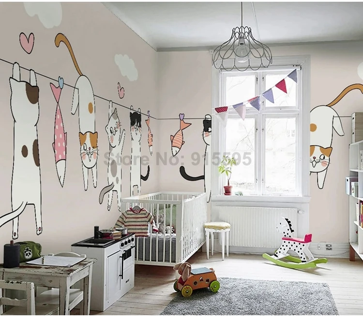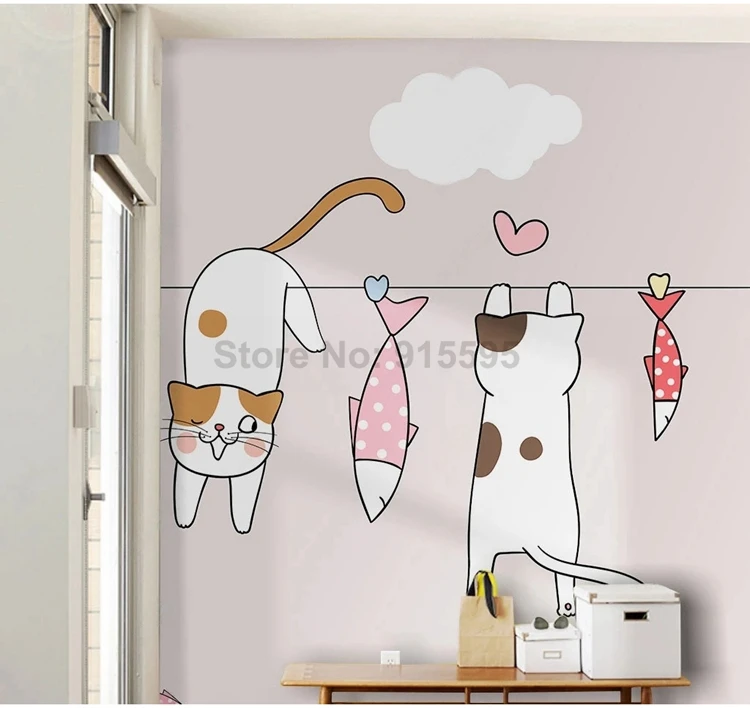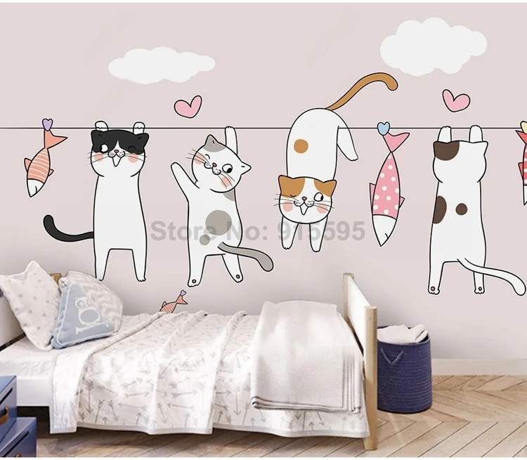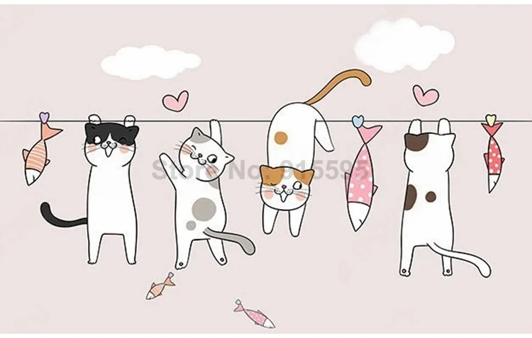 Мультяшные фото фрески для детской спальни обои современный скандинавский 3D Ручная роспись Кот фон для детской комнаты настенная бумага домашний декор