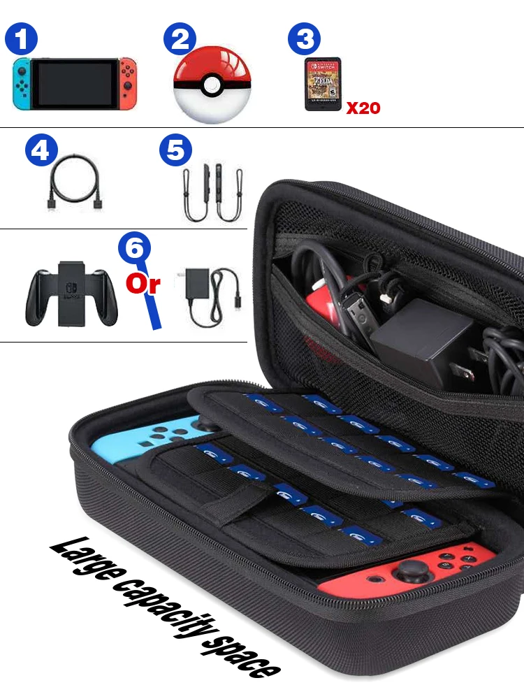 Жесткий чехол EVA защищает Совместимость-переключатель Nintendo от падений, царапин, ударов, брызг и пыли. Мягкая подкладка защищает консоль от царапин. Конструкция паза делает аксессуары раздельными, чтобы не царапать друг друга.