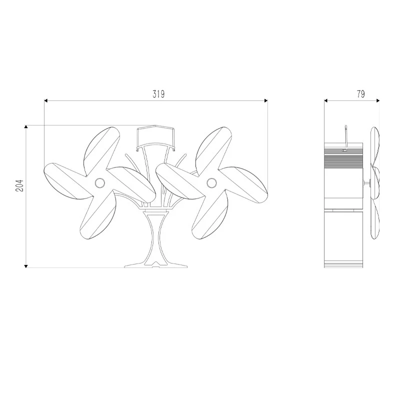 Никаких батарей или электросети не требуется, термоэлектрический модуль выступает в качестве маленького генератора для питания двигателя вентилятора. Основание вентилятора и лезвие изготовлены из анодированного алюминия, который является коррозионно-стойким, износостойким, с хорошей теплопроводностью бесшумной работы, распространения тепла вокруг помещения и повышения температуры с низким уровнем шума, impove теплая циркуляция воздуха обеспечивает больший комфорт и уменьшает потребление древесины из вашей печи. Более стабильная и экологичная защита