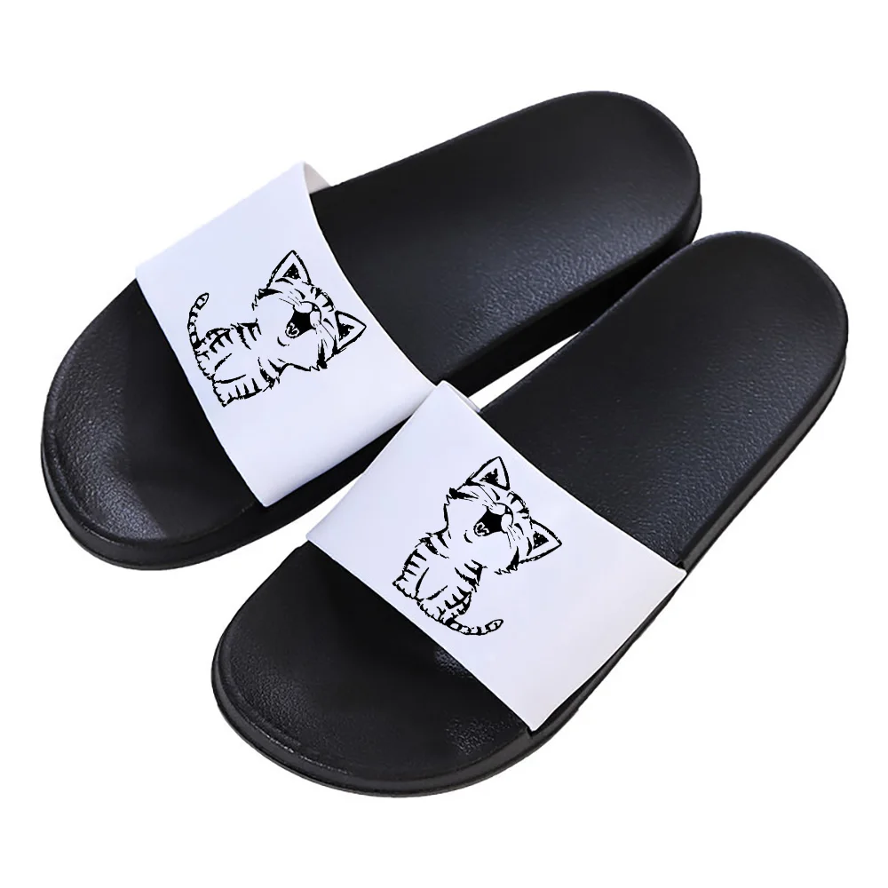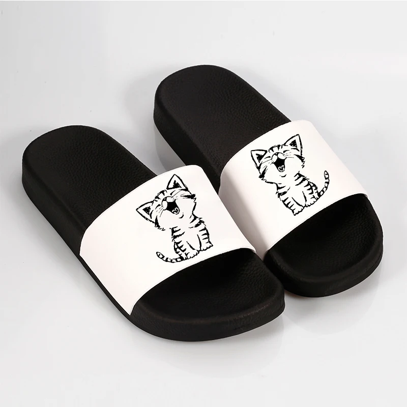 Сандалии женские домашние с рисунком кошки, шлепанцы для душа, мягк...
