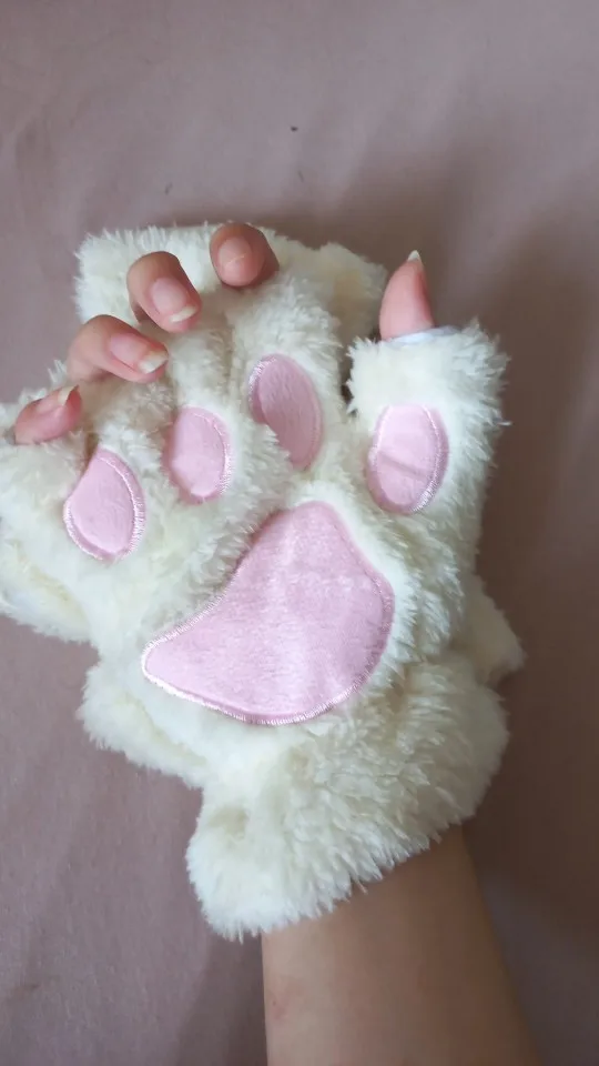 Милые женские перчатки в виде кошек, модные плюшевые варежки в виде кошачьих лап с когтями, Теплые мягкие плюшевые короткие зимние перчатки без пальцев