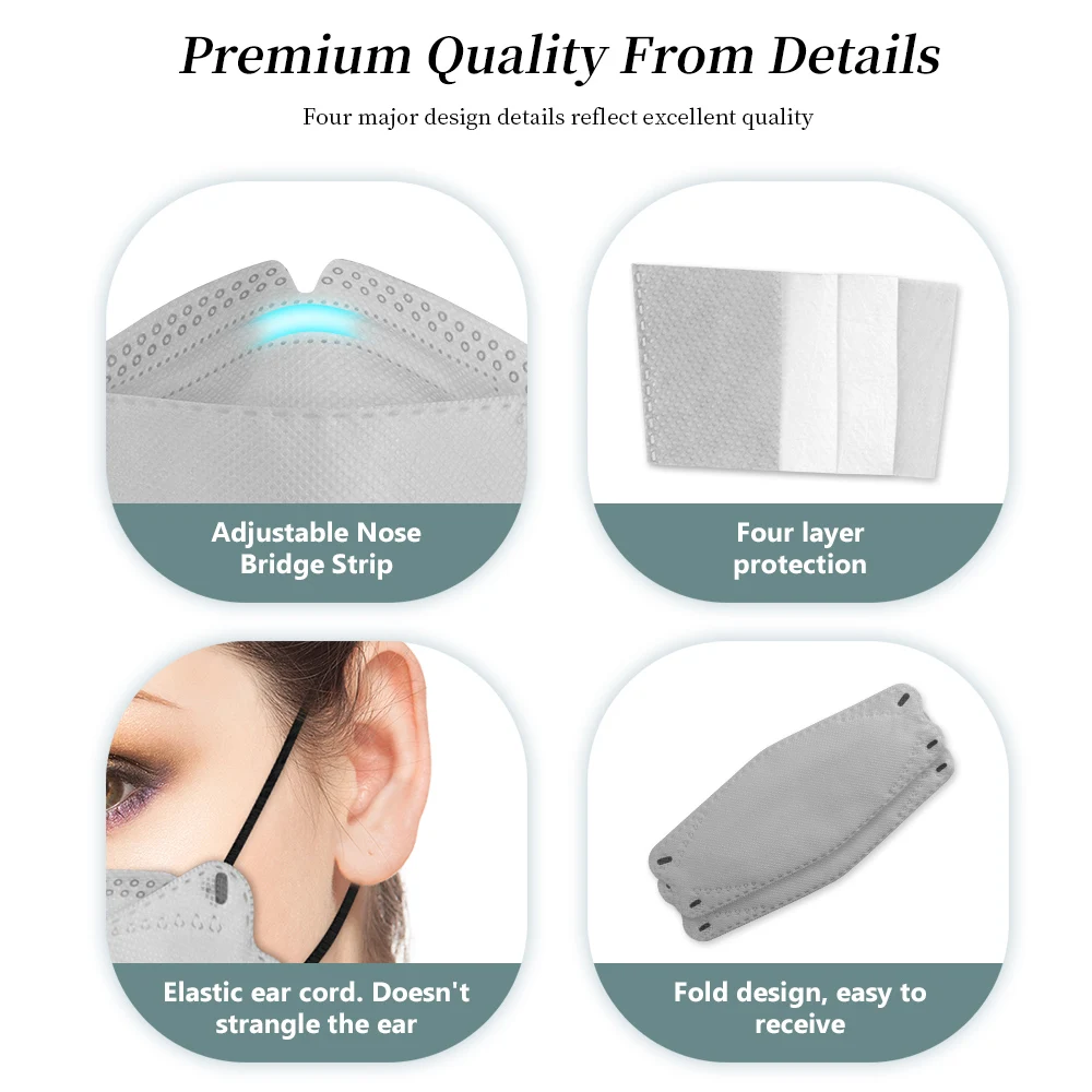 Маски FPP2 KN95 FFP2 4 слоя FFP2mask для взрослых рыбок, 10-200 шт....