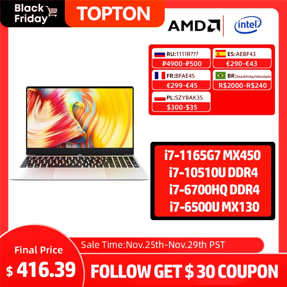 Игровой ноутбук Topton, 15,6 дюймов, i9 10880H i7 1165G7 i7 10750H ...