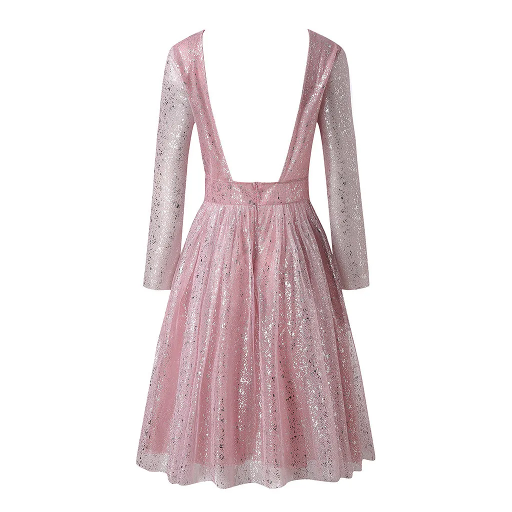 Женское платье с блестками, однотонное вечернее платье с длинным ру...