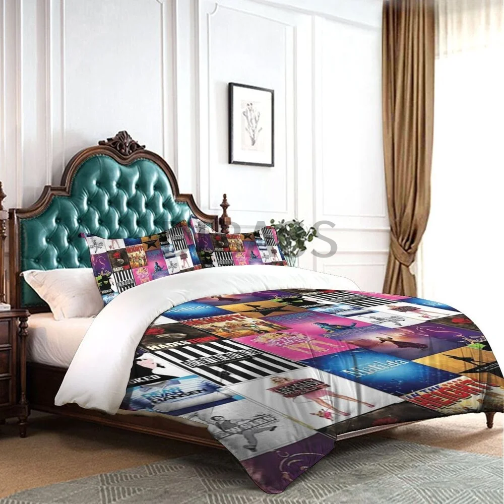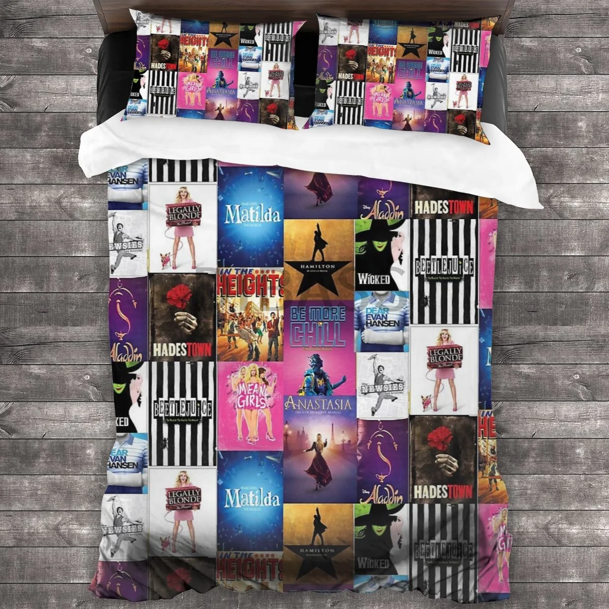 Музыкальный Playbill коллаж одеяло с 2 наволочками, мягкий комплект постельного белья из микрофибры пододеяльник