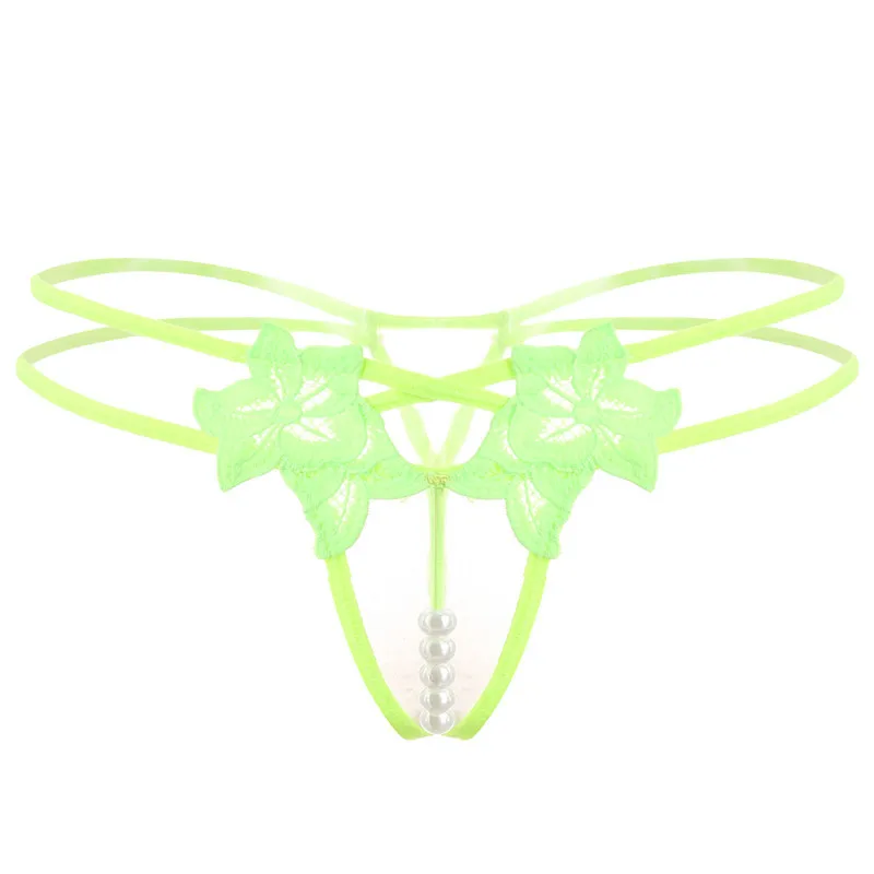 Эротические трусики, женские сексуальные вышитые стринги с жемчугом и открытой промежностью, экзотическое нижнее белье, массажные трусики, нижнее белье, чувственные костюмы