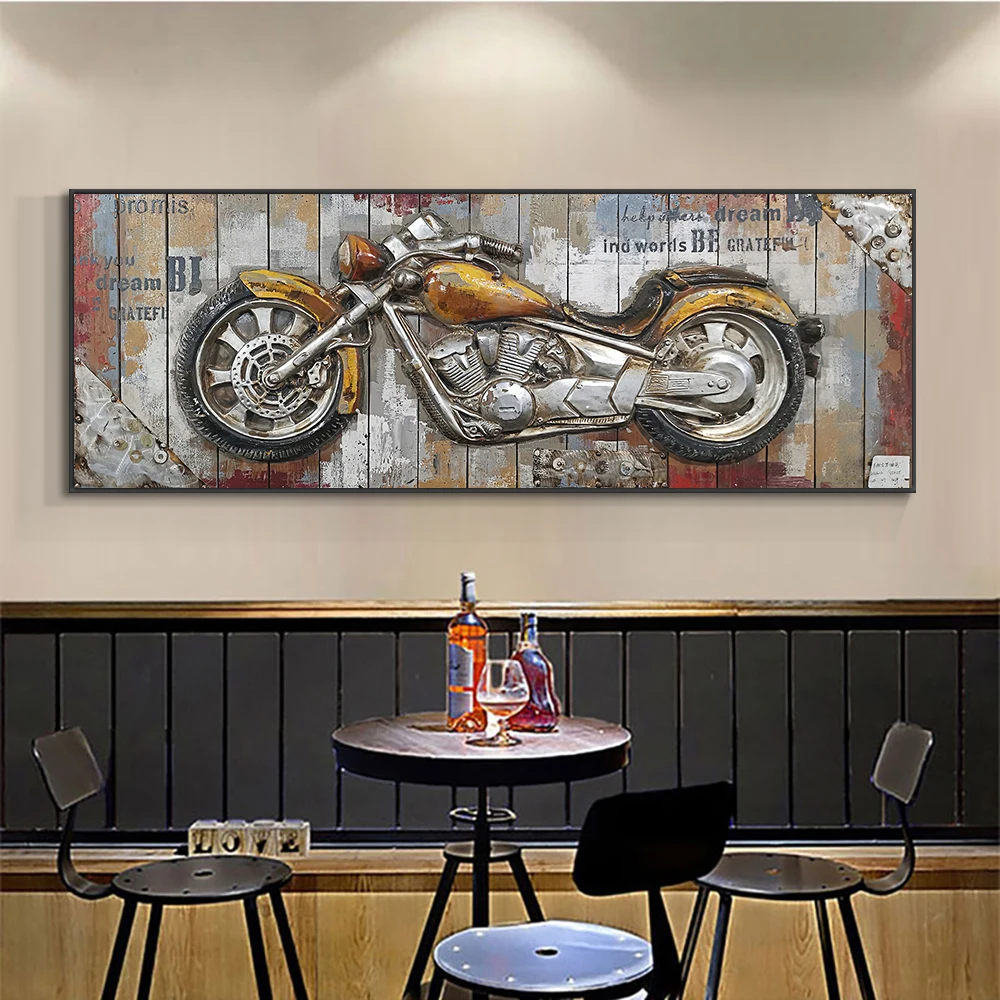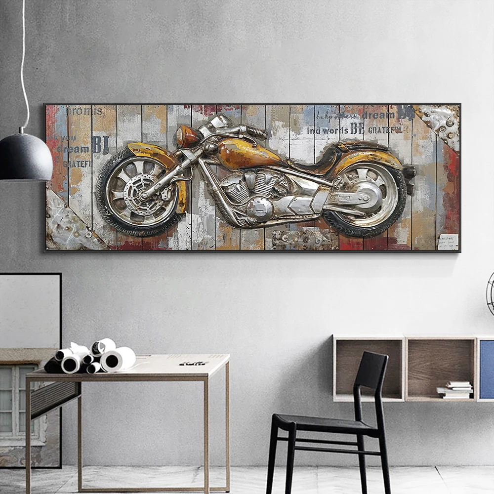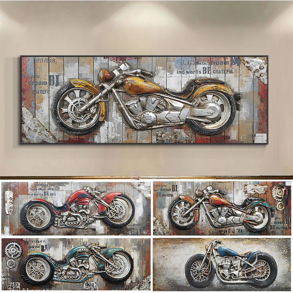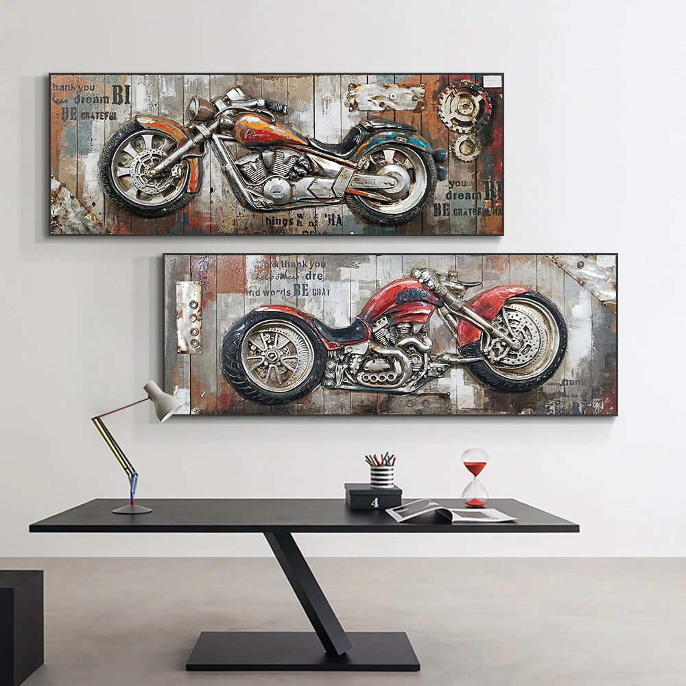 Абстрактные ретро и ностальгические 3D картины маслом мотоцикла напечатанные на холсте моторы плакаты и принты настенная живопись для домашнего декора стен