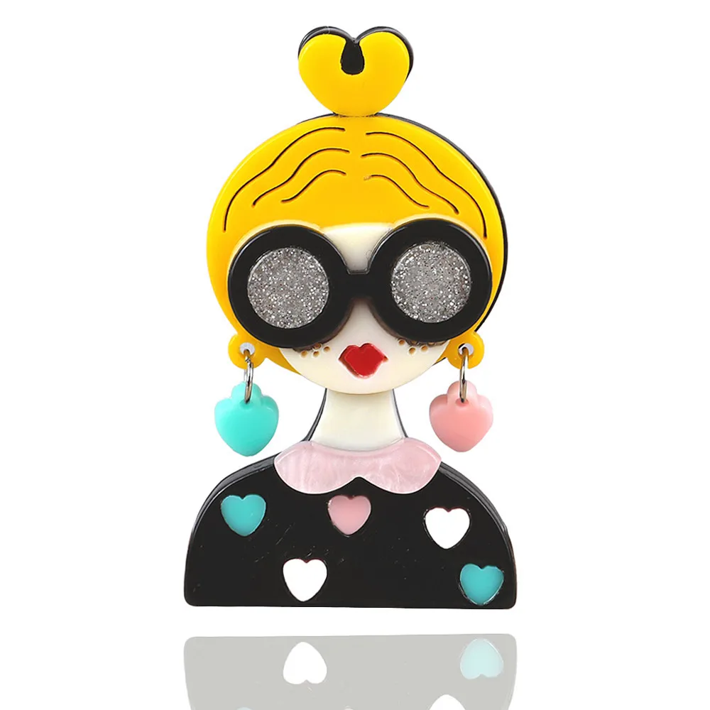 Новинка, милая желтая брошь с рисунком конского хвоста для женщин, милое акриловое сердце, подвесная брошь, украшения для вечерние
