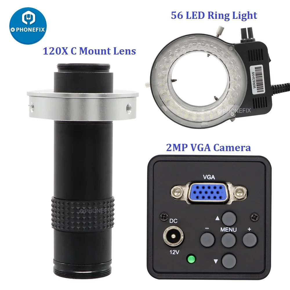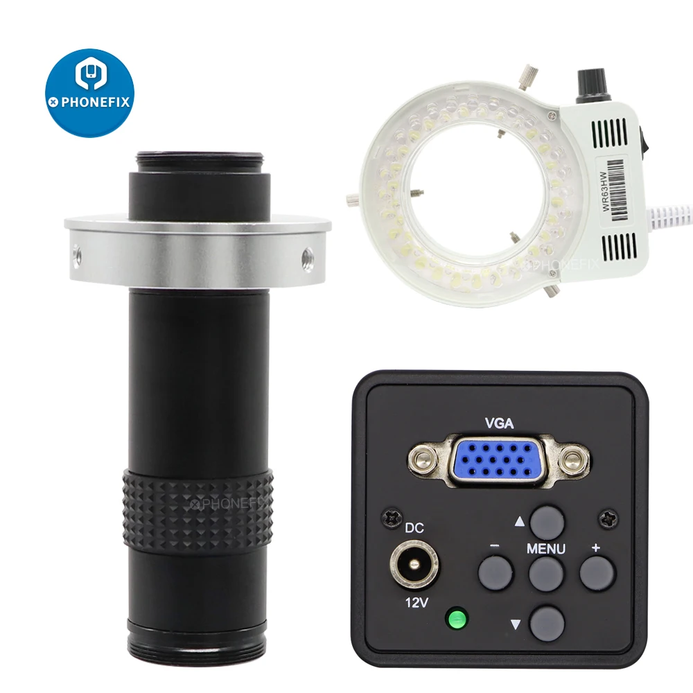 1080P VGA цифровой микроскоп набор камер 120X с креплением объектива регулируемый 56 светодиодный кольцевой светильник для телефона материнской платы печатной платы ремонт пайки