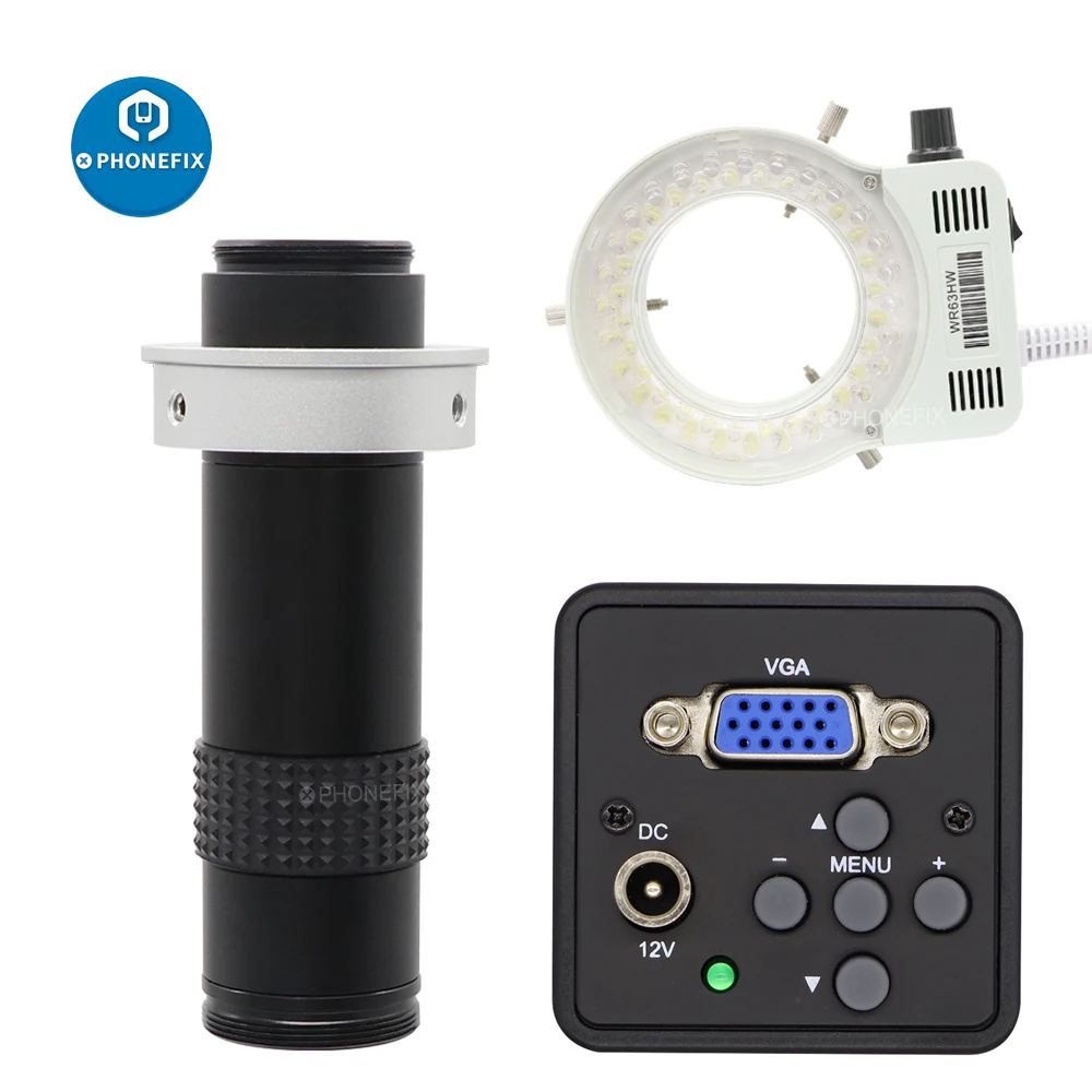 VGA HDMI USB цифровой микроскоп камера набор для электроники пайки 120x C крепление объектива светодиодный светильник кольцо микроскоп камера Full HD