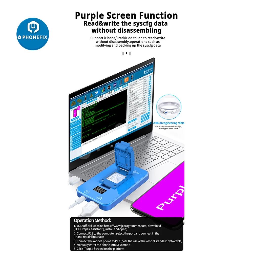 Плата JC P13 Ultimate Box для 8-13Promax PCIE NAND, жесткий диск, программатор с одним ключом, ввод DFU, фиолетовый экран, SYSCFG, модификация данных, запись