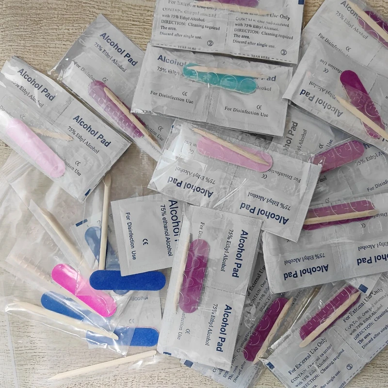 pink set: 4 in 11pcs file block, 1pcs nail remover, 1 sheet jelly glue, 1x alcohol pad