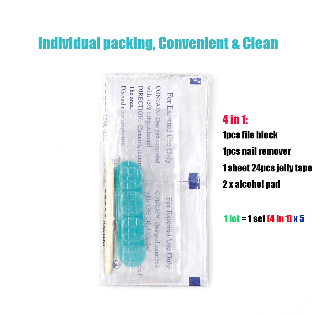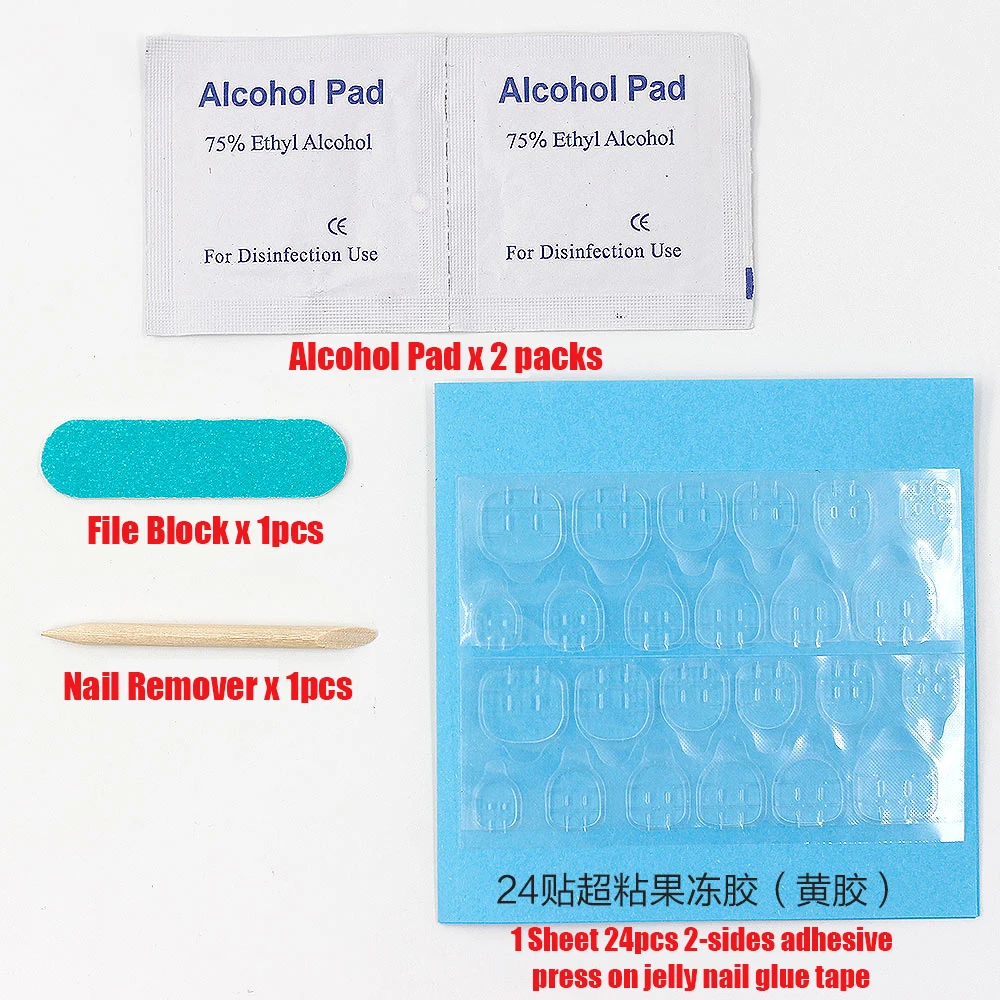 yellow Set: 4 in 11pcs file block, 1pcs nail remover, 1 sheet jelly glue, 2x alcohol pad