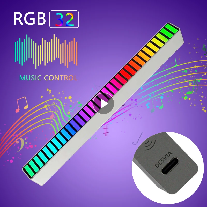 Музыкальсветильник световая палочка, активируемая голосом, 32 бит, RGB, звуковая панель спектра, пикап окружающего диджея, светодиодный дисплей, ритм-пульс, цветной сигнал