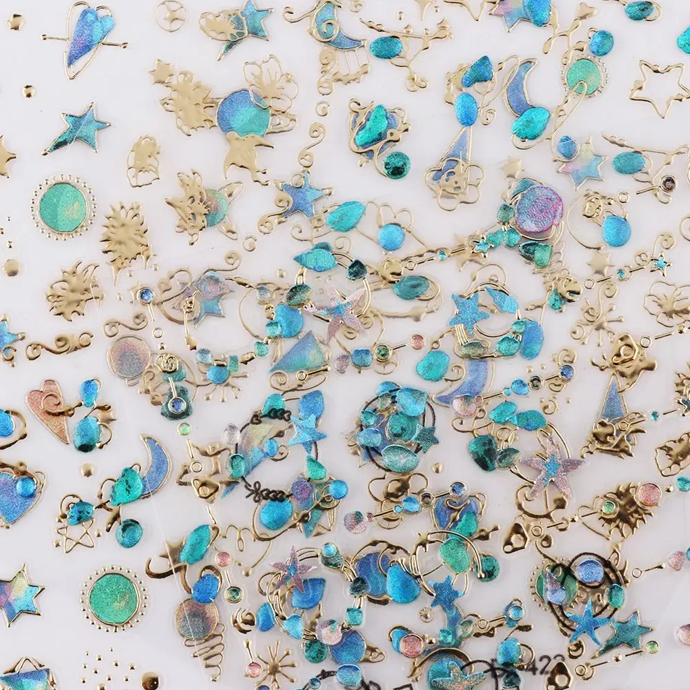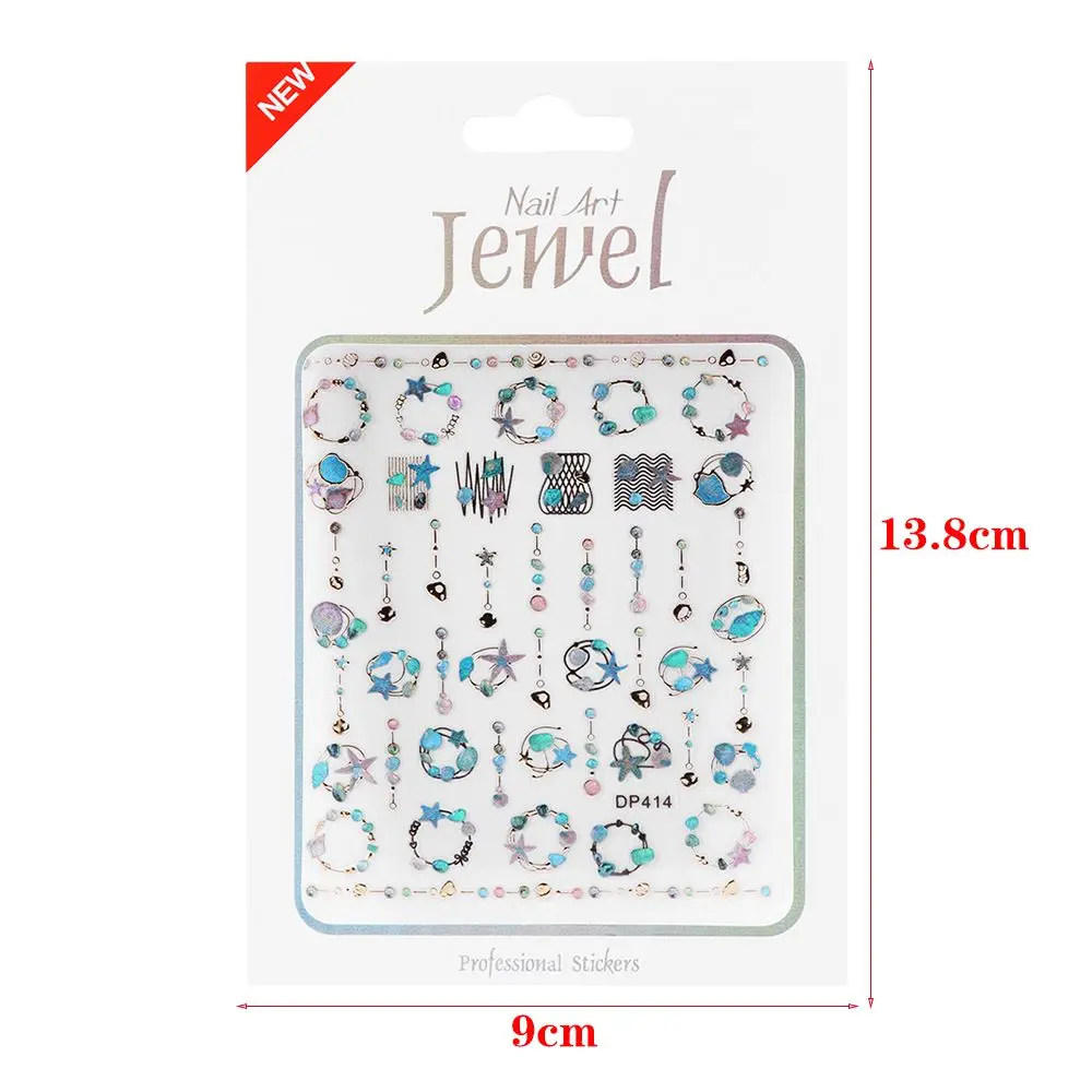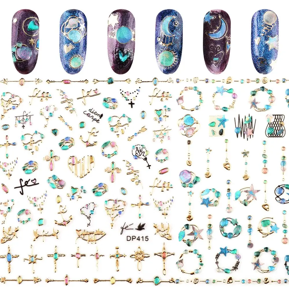 1 лист Блестящий 3D переводной слайдер для ногтей наклейка наконечник цветок корона ювелирные изделия звезда Маникюр металлические наклейки декор для модных женщин