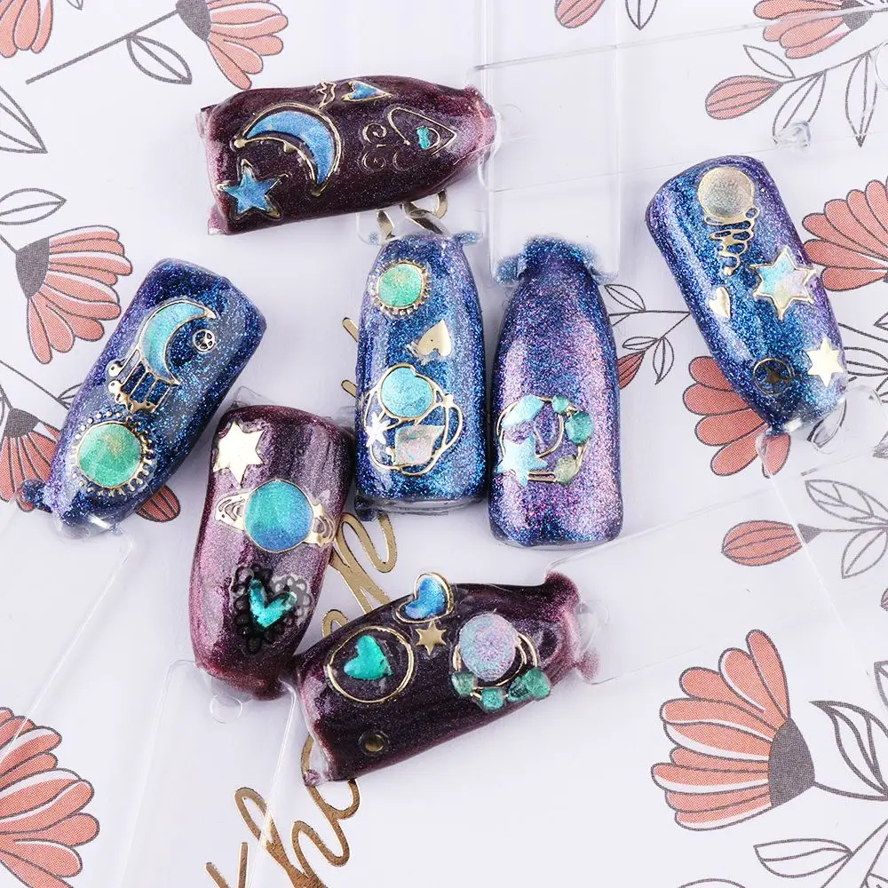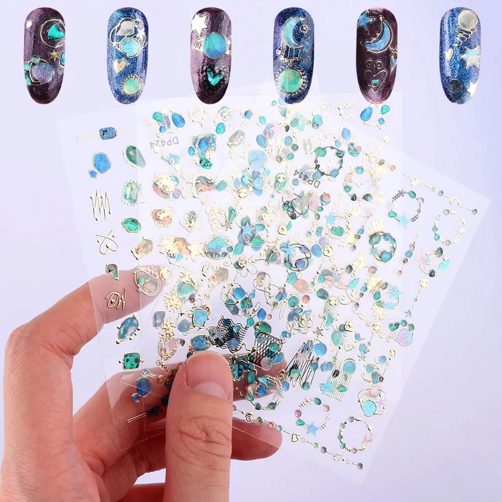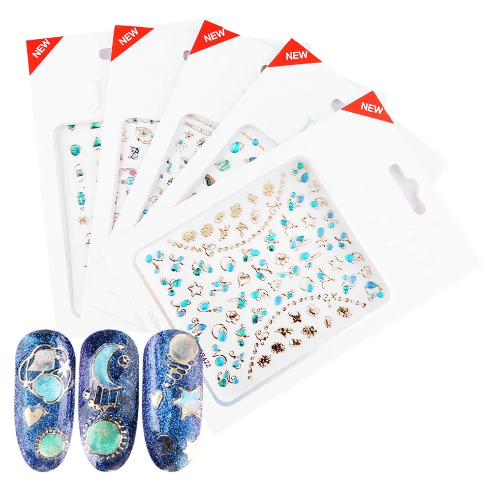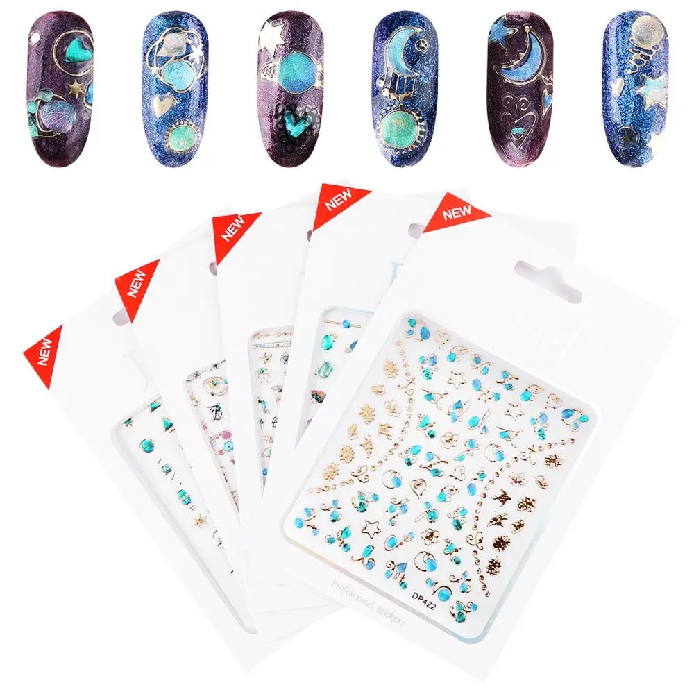 1 лист Блестящий 3D переводной слайдер для ногтей наклейка наконечник цветок корона ювелирные изделия звезда Маникюр металлические наклейки декор для модных женщин