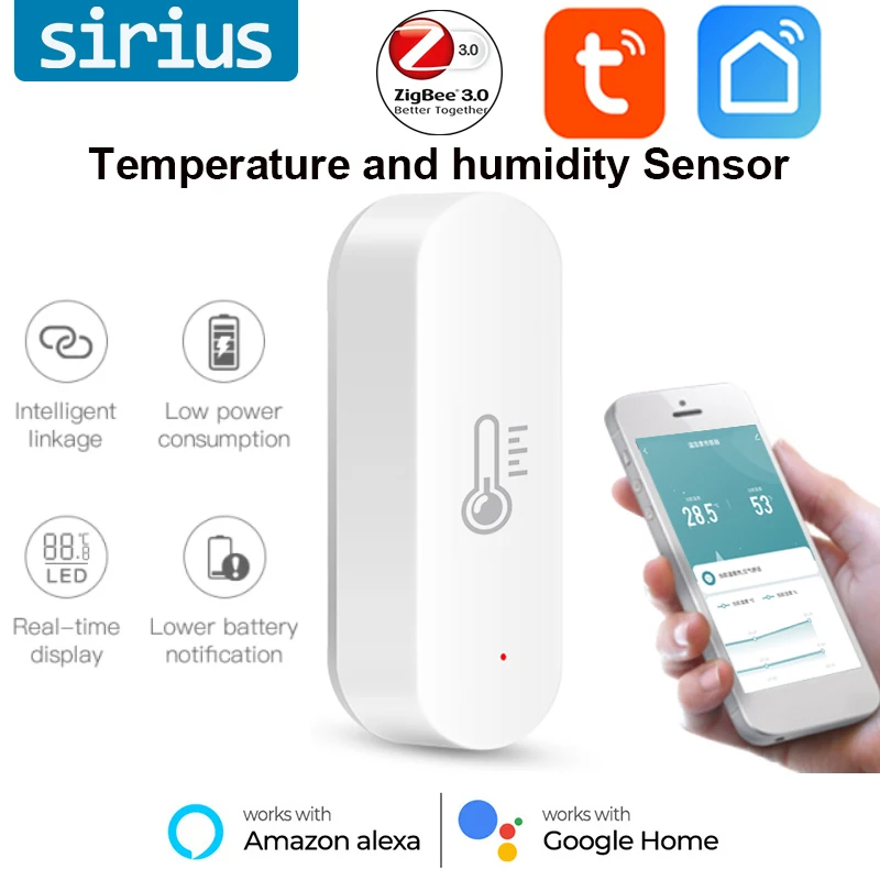Умный датчик температуры и влажности Tuya Zigbee, дисплей в режиме реального времени, интеллектуальное соединение, дистанционное управление через приложение, совместим с Google Home
