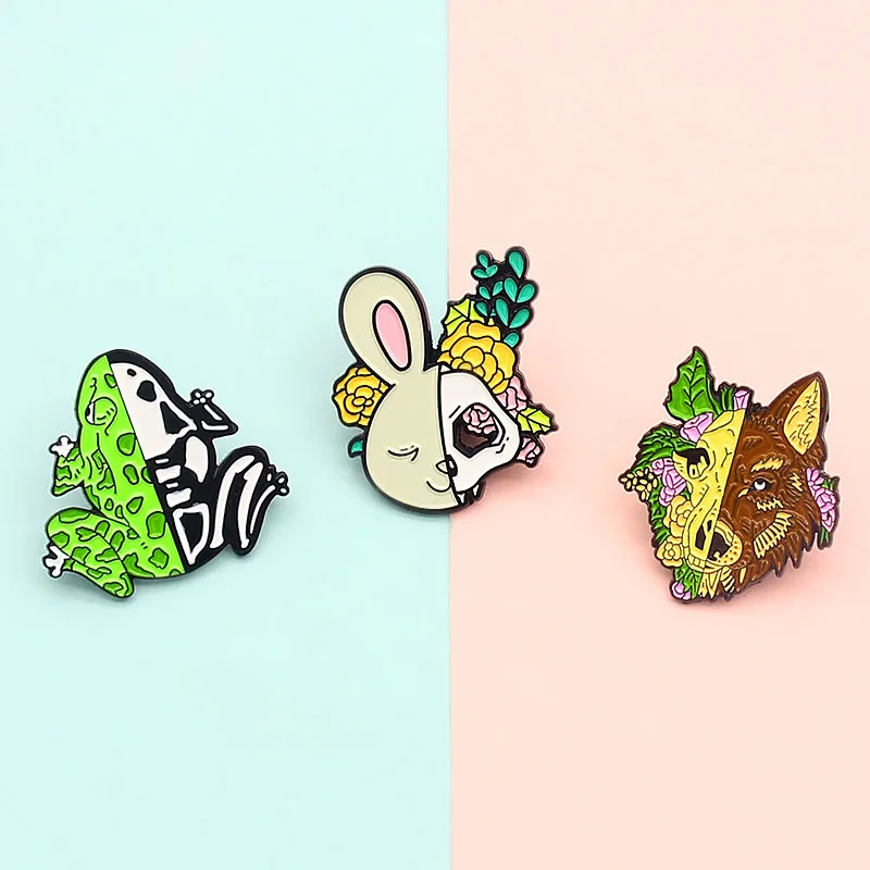 Цветочные растения животные череп эмалевые булавки Кролик Лягушка в...