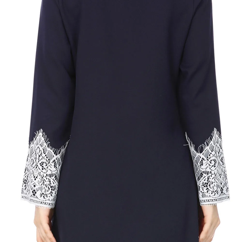 Мусульманские женщины Мусульманское Макси-кимоно с кружевной отделкой спереди