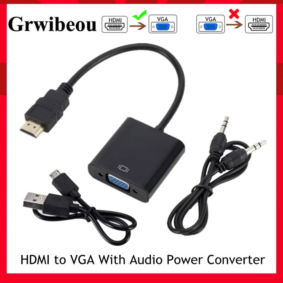 Grwibeou HD 1080P HDMI мужчина к VGA Famale кабель конвертер с аудио блок питания адаптер цифровой аналог для планшета ноутбука ПК ТВОписание:Это новый чип-адаптер, который может преобразовывать цифровой сигнал HDMI в аналоговый сигнал VGA.Он имеет встроенный чип, поэтому может преобразовывать сигнал из цифрового в аналоговый. Включите ПК, DVD и другие входные устройства HDMI для подключения к монитору компьютера, проектору или другому дисплею.Спецификация:1. Входной сигнал: цифровой сигнал HDMI;2. Выходной сигнал: аналоговый сигнал VGA;3, Разрешение: 480p/720p/1080i/1080p (автоматический);4. Поддержка: совместимость с HDMI 1,3/1,4;5, цвет: черный, белыйПримечание:Если ваше устройство PS4, TV box, projector, выберите шнур питания и аудиокабель, потому что эти устройства требуют дополнительной мощности.Посылка включает в себя:1 * HDMI в VGA конвертерПосылка включает в себя:1 * HDMI в VGA конвертер1 * аудио кабельПосылка включает в себя:1 * HDMI в VGA конвертер1 * аудио кабель1 * шнур питания