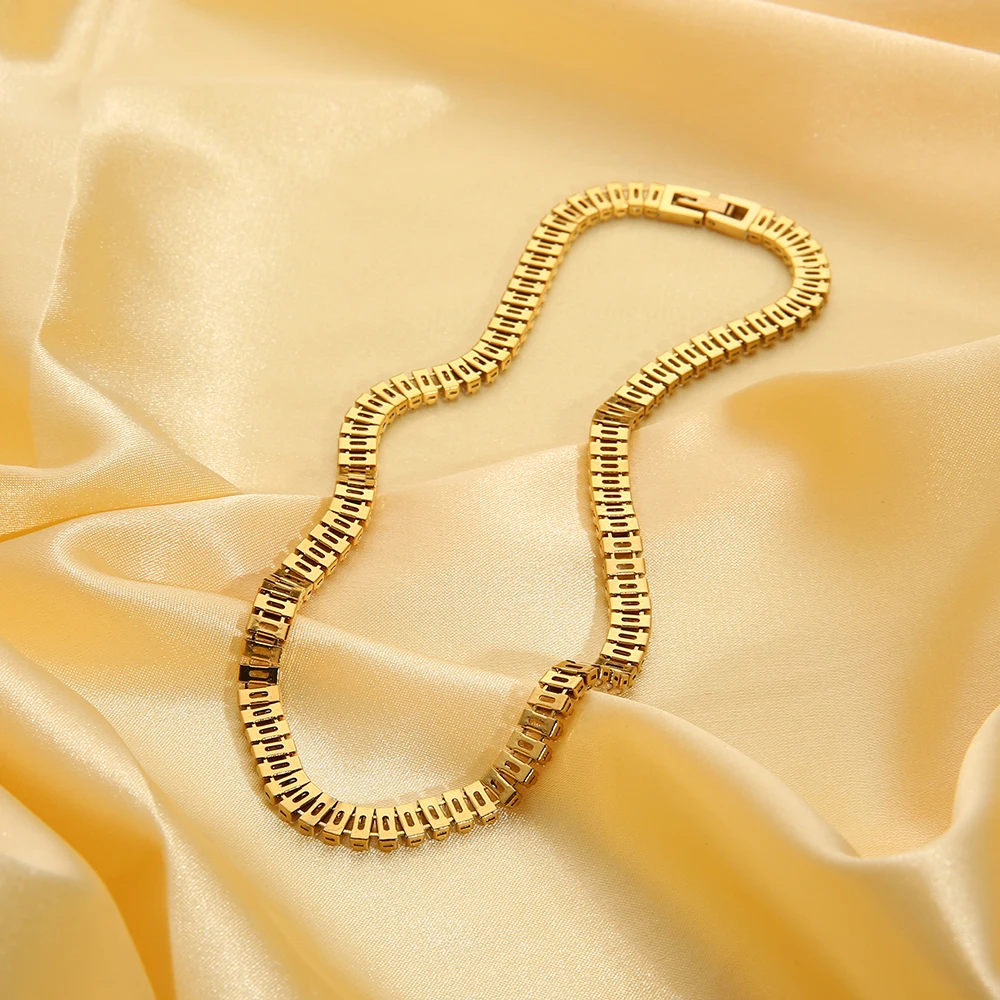 Ожерелье из нержавеющей стали с квадратным кубическим цирконием для женщин и девушек, колье-чокер из нержавеющей стали с покрытием из 18-каратного золота, 2022