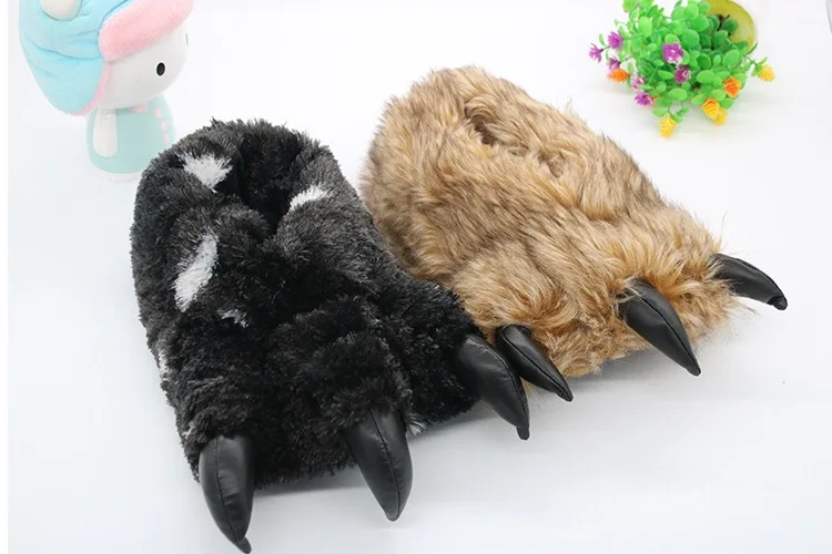 Тапки для мужчин и женщин, смешные меховые шлепанцы с животными, медвежьи когти, плюшевые теплые меховые тапочки, сланцы, домашние шлепанцы
