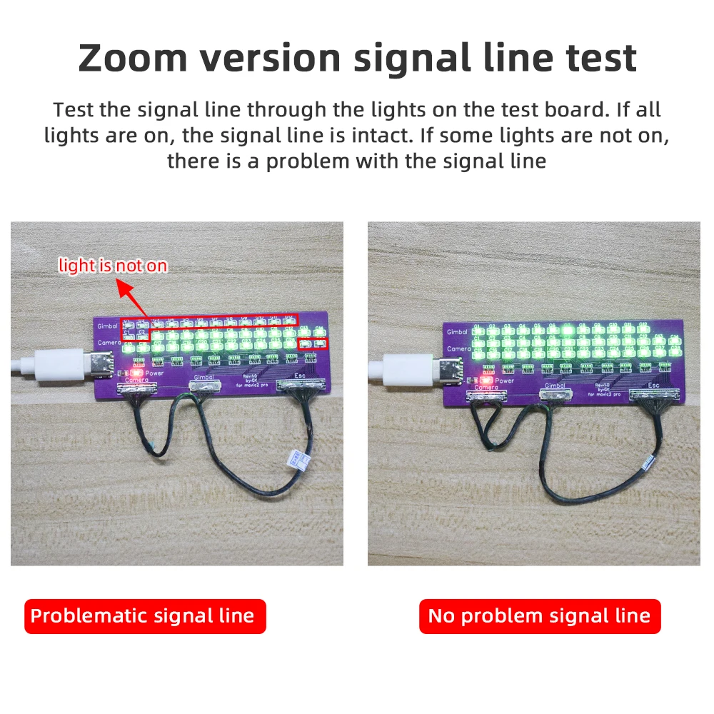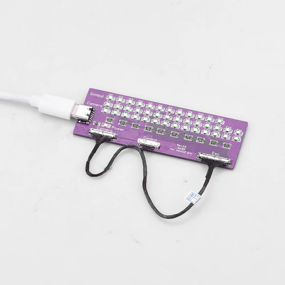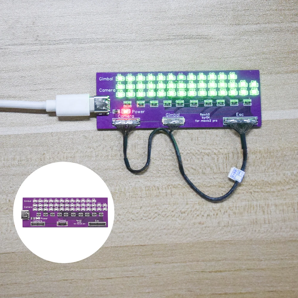 1. Испытательный инструмент для сигнальной линии дрона Mavic 2,2. Вы можете проверить сигнальную линию через светильник на испытательной плате,3. Если свет от 1 до 26 включен, сигнальный провод не поврежден. Если какая-то светильник s не светильник, это означает, что возникла проблема с сигнальным проводом (off светильник s No. 27 и 28 не влияют на работу сигнальной линии).