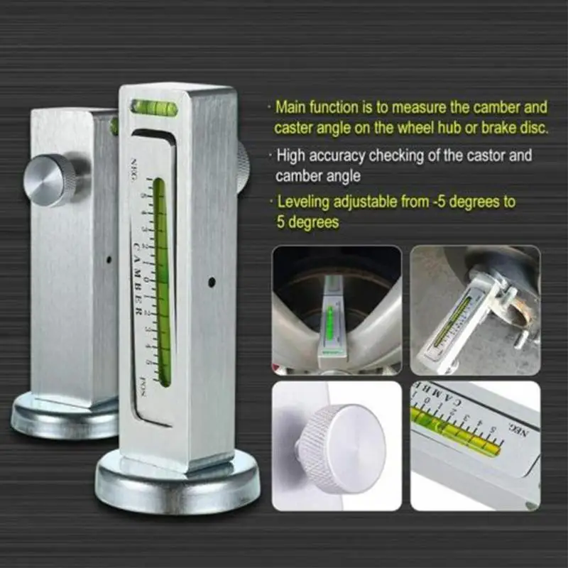 Характеристика:1. Устройство экономии времени и денег.2. Вес: 256 г/9,14 унций3. Измеряет Угол развала и Кастер на ступице колеса или тормозном диске.4. Имеет простую регулировку выравнивания от-5 градусов до 5 градусов.5. Это позволяет регулировать для поддержания правильного выравнивания колес и даже износа шин.6. Это регулируемое оборудование позволяет вернуть стойки в исходное положение развала после демонтажа этого регулируемого оборудования позволяет вернуть стойки в исходное положение развала после демонтажа и повторной сборки Подвески или проверить количество развала изменяется перед повторной установкой.Инструкции по использованию:1. Снимите датчик центровки колес (инструмент зажима), снимите шину;2. Магнитный Уровнемер тщательно расположен на стороне дисковых тормозов всасывающего колеса;3, уровень воды был скорректирован до нуля;4. Установите требуемое местоположение конкретных частей;5. Используйте специальный инструмент с индикацией уровня магнита, отрегулируйте расположение детали под нужным углом измерения.6, проверьте локатор, если есть небольшое отклонение, просто для тонкой настройки транспортного средства. (Обычно небольшое отклонение не вызывает ошибки)Посылка включает в себя: 1 шт.