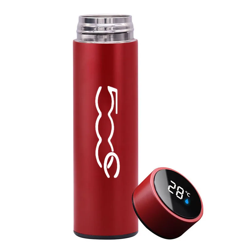 Интеллектуальный термос из нержавеющей стали объемом 500 мл, чашка, термометр, вакуумные фляжки, дорожный автомобиль для Fiat 500 500C, аксессуары