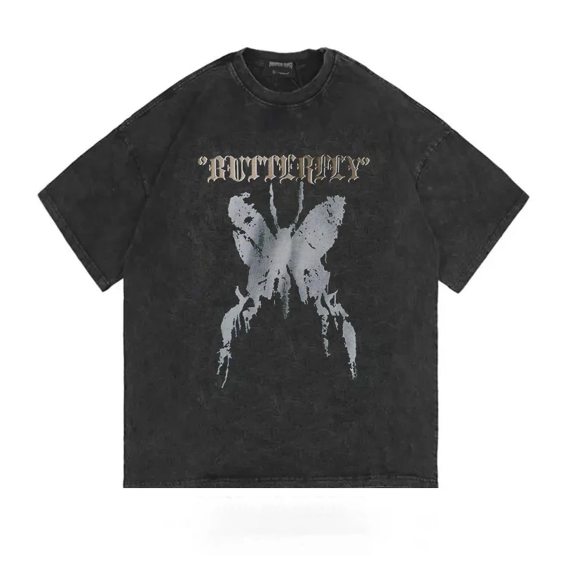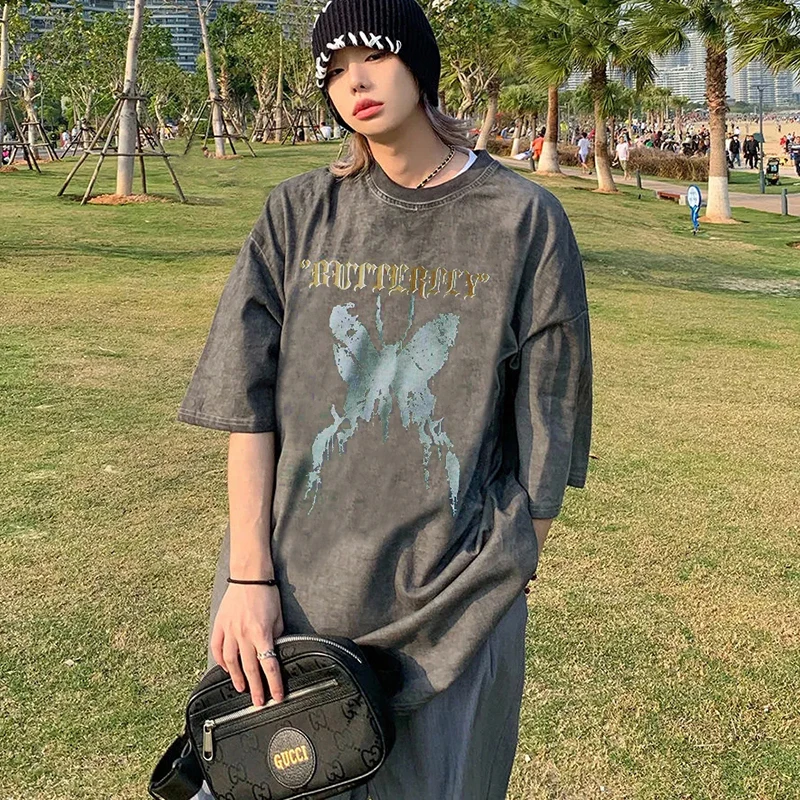 Футболка мужская в стиле Харадзюку, темные топы с бабочками в стиле...