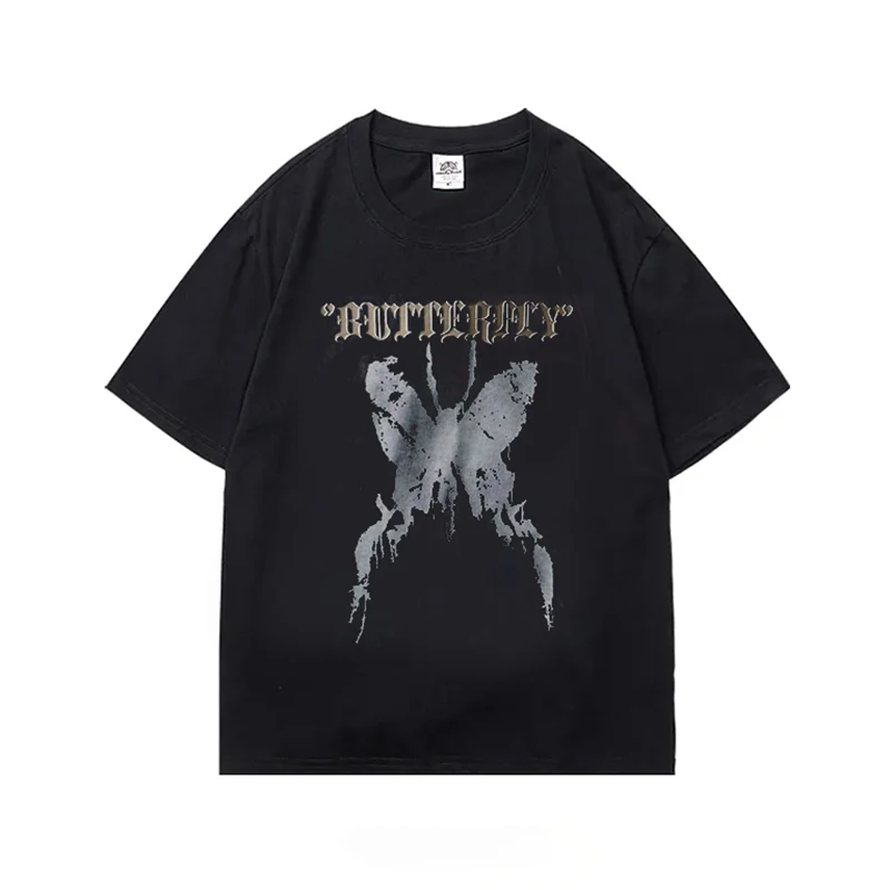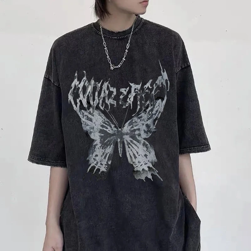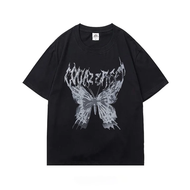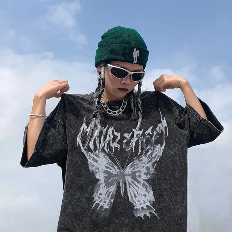 Футболка женская оверсайз в стиле Харадзюку, модный топ в стиле Swag в стиле панк с бабочками, Готическая футболка в стиле эмо, уличная одежда в стиле s, Y2K