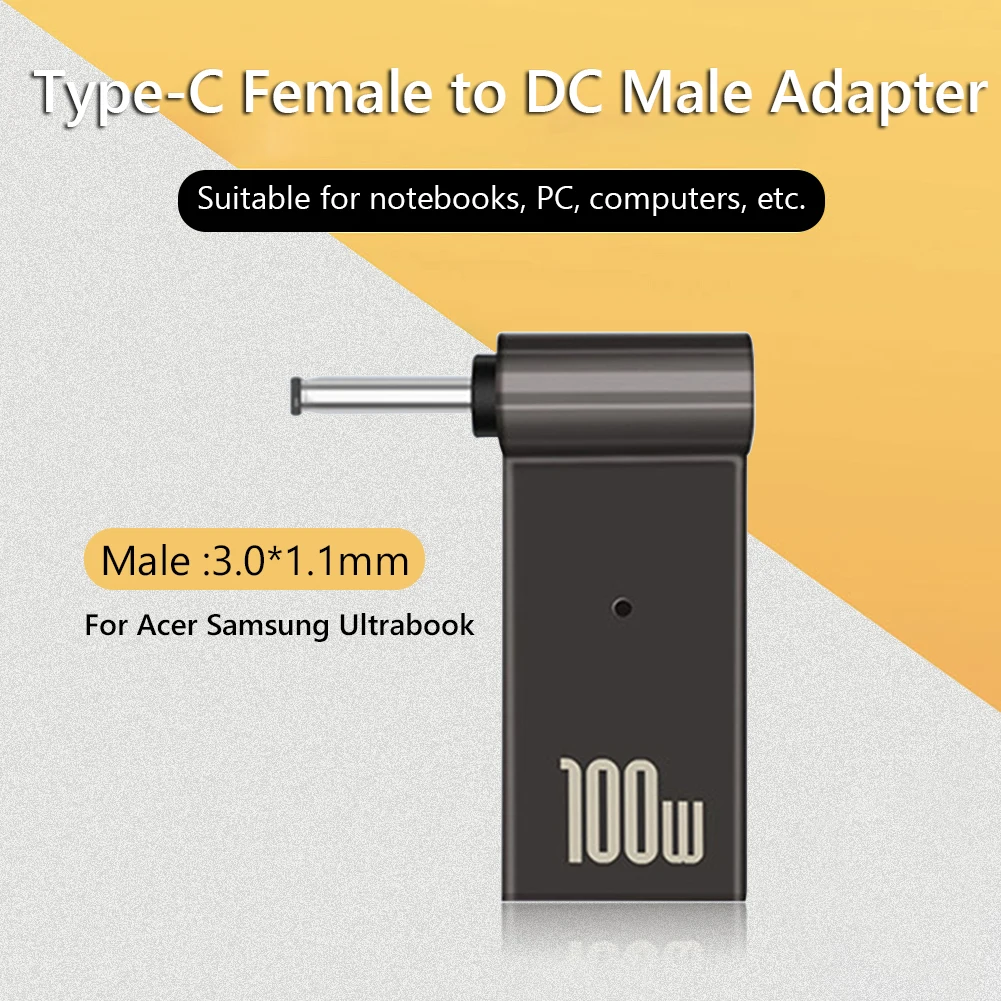 Адаптер питания PD 100 Вт для ноутбука, разъем USB Type-C Мама-папа постоянного тока, Штекерный конвертер для Lenovo, Acer, Samsung