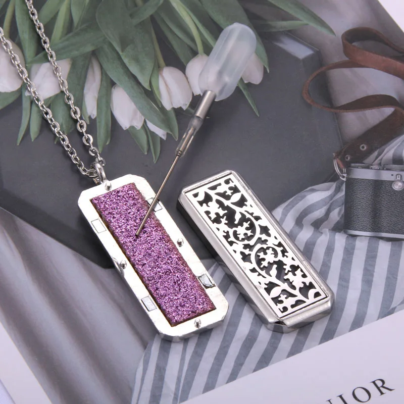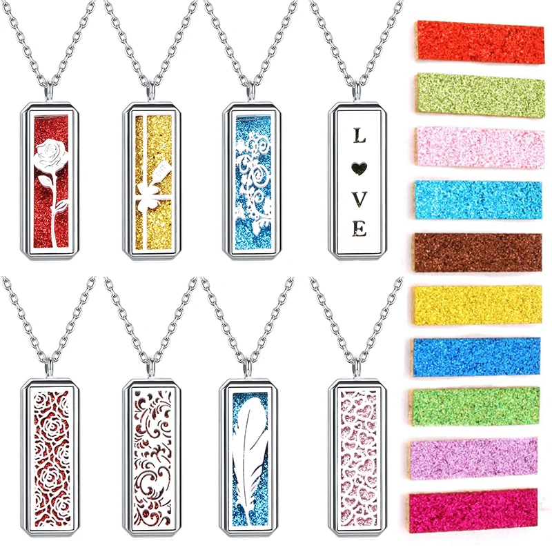 Ожерелье для ароматерапии, прямоугольное, из нержавеющей стали