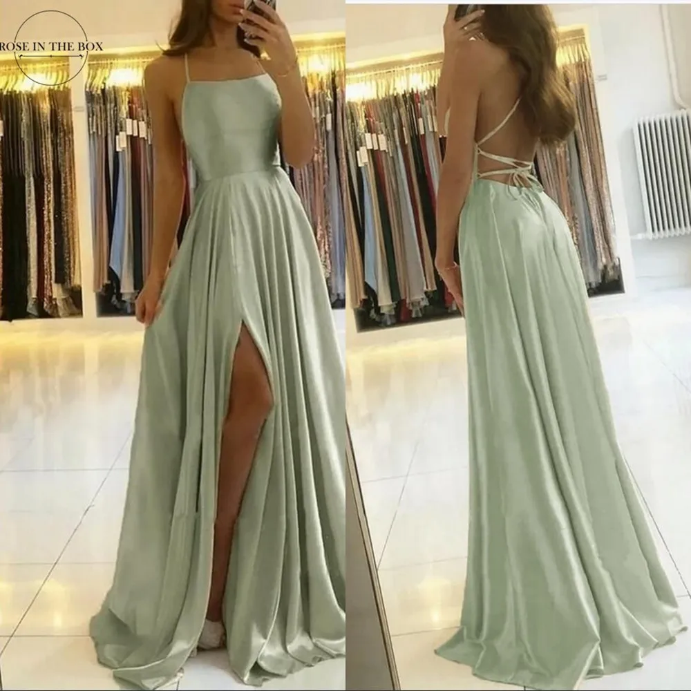 Дешевые однотонные Длинные вечерние платья с перекрещивающимися лентами 2022 сексуальные атласные вечерние платья с открытой спиной и разрезом на боку