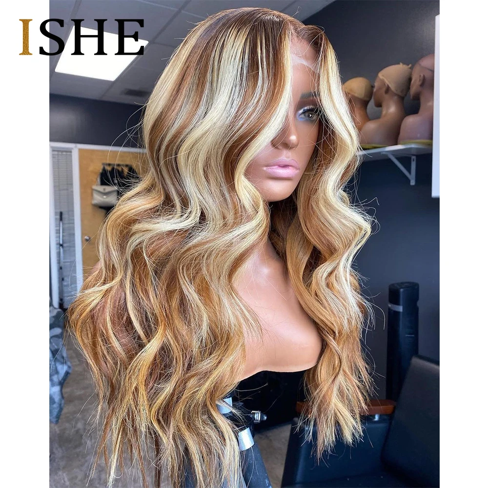 Хайлайтер медовый светлый Тело Волна Кружева передние парики 4x4 па...