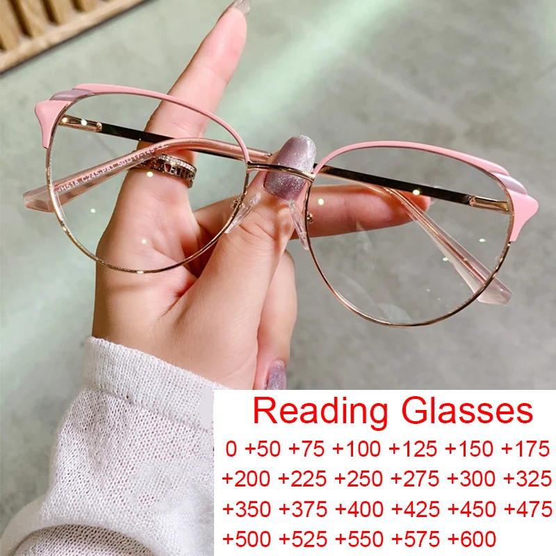 Очки для чтения женские с прозрачными линзами, винтажные оптические пресбиопические в металлической оправе, с пружинными петлями, кошачий глаз, с защитой от сисветильник