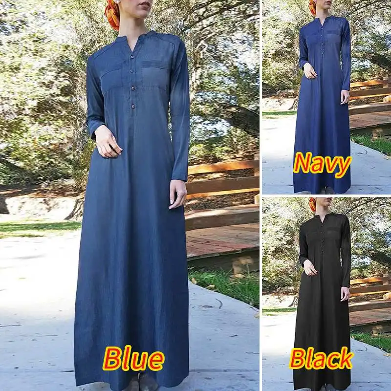 2022 осеннее джинсовое длинное платье VONDA, женские модные повседневные праздничные платья на пуговицах с длинным рукавом, богемные свободные элегантные платья