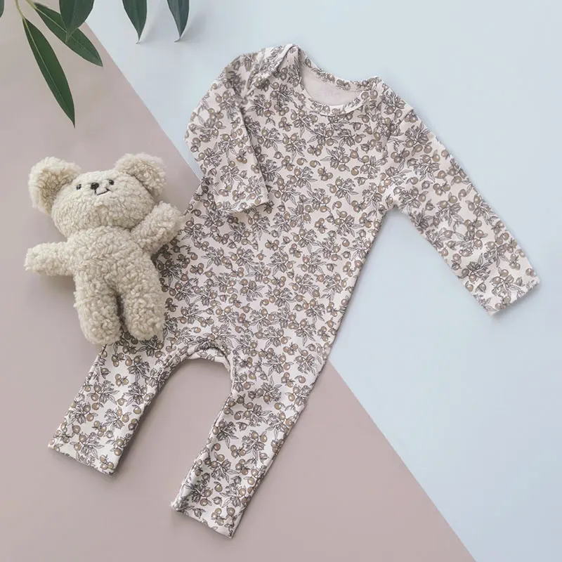 Детский хлопковый комбинезон, с длинным рукавом и цветочным принтом
