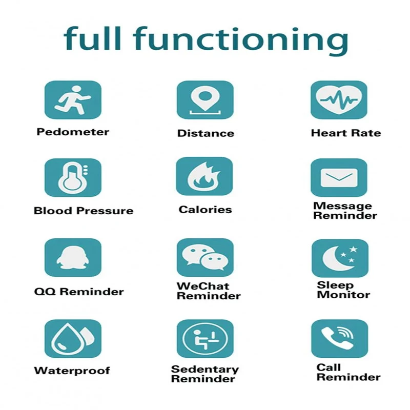 * Дополнительные функции: Поиск браслета, напоминание о тревоге, удаленная камера, поднимите руку, чтобы осветить, управление музыкой,