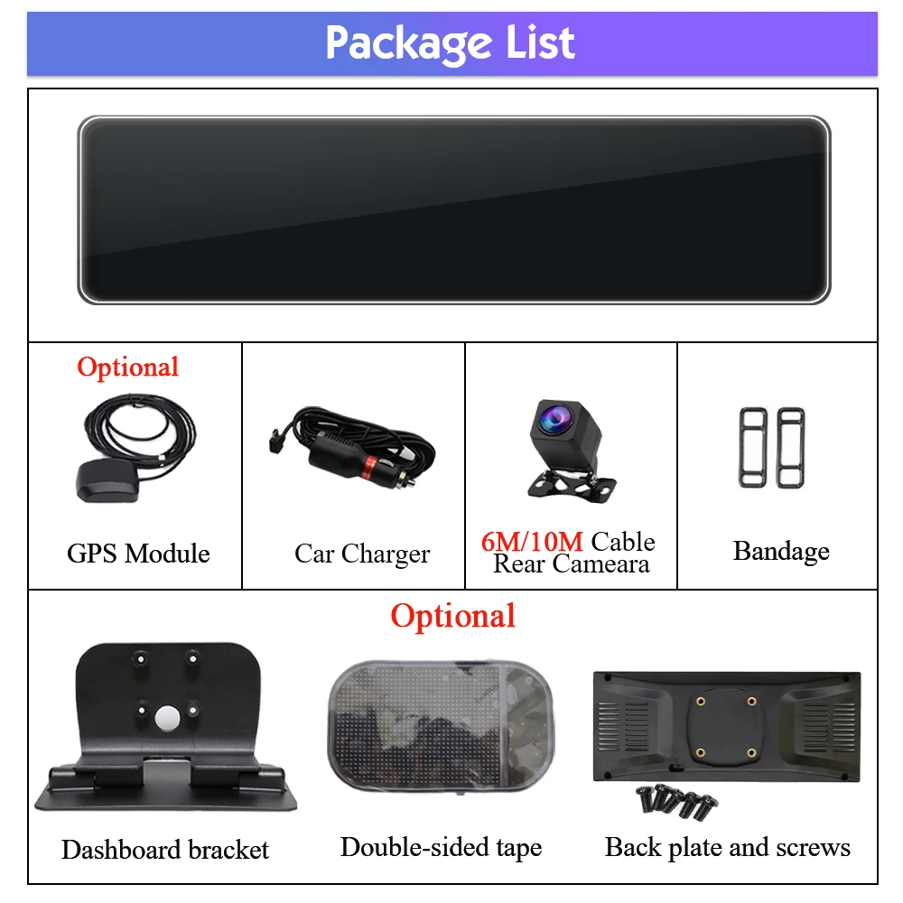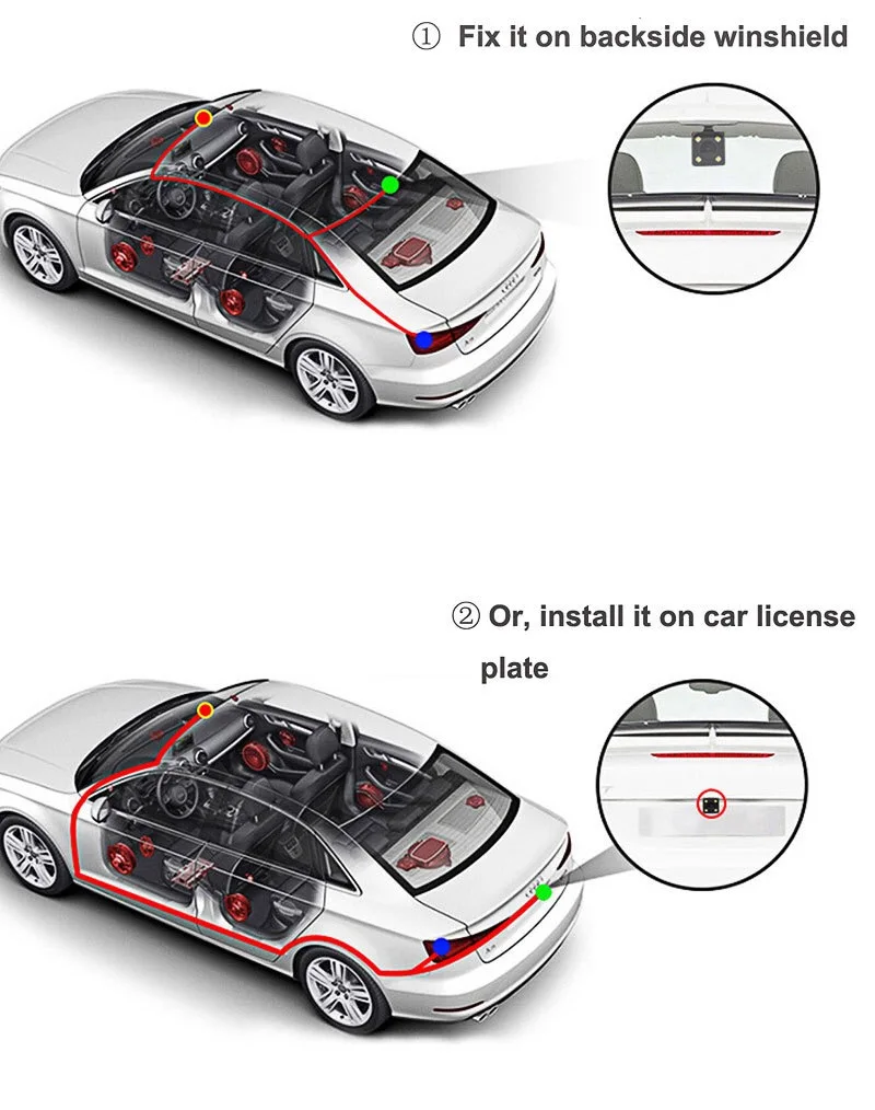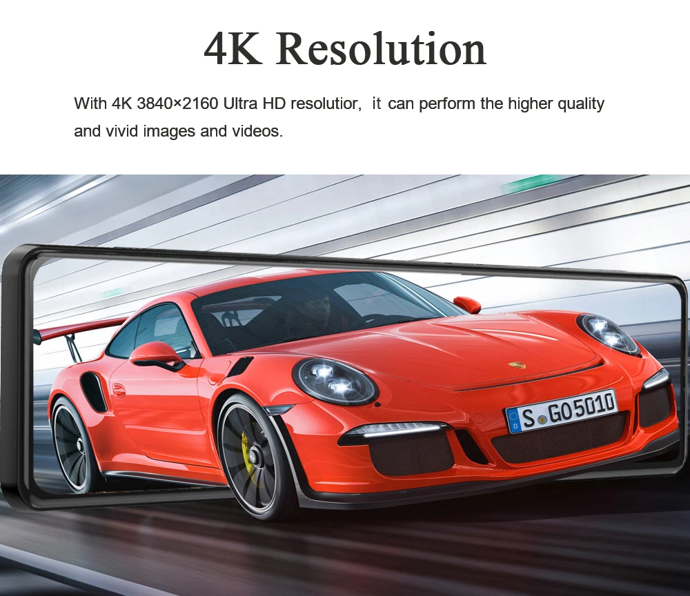 Применение: камера 4K, Потоковое мультимедиа заднего вида, отличное ночное видение, реверсивное видео, датчик столкновения, двойное видео спереди и сзади, циклическая запись, угол обзора Adjustabl, специальный Монтажный держатель