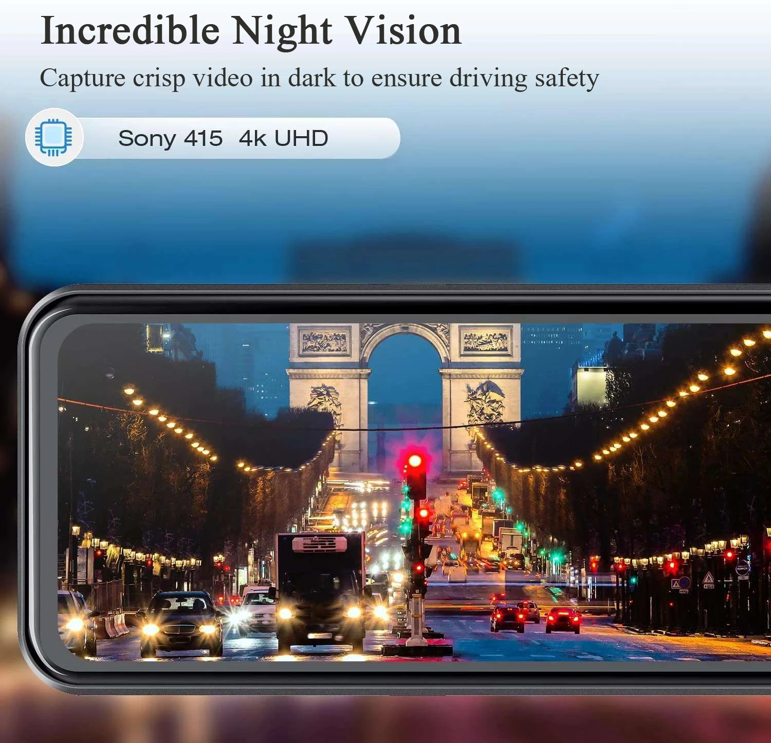 Видеорегистратор автомобильный, 12 дюймов, 4K, 2160P, GPS, Wi-Fi