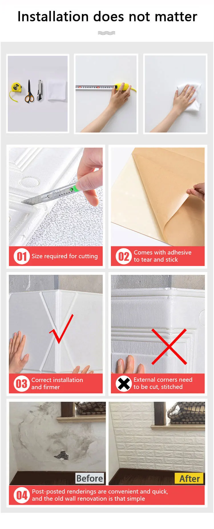 Размер:39 см x 35 см x 12 шт. = 1,6 квадратных метров = 17,6 квадратных футовТолщина:4 ммОсобенности:Анти-столкновения, водонепроницаемый, самоклеющийся, DIY, анти-столкновения, влагостойкий и т. Д.
