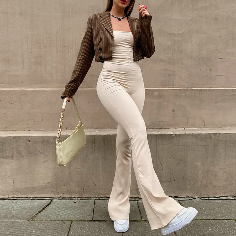 Комбинезон женский с открытыми плечами, Облегающий комбинезон с дли...