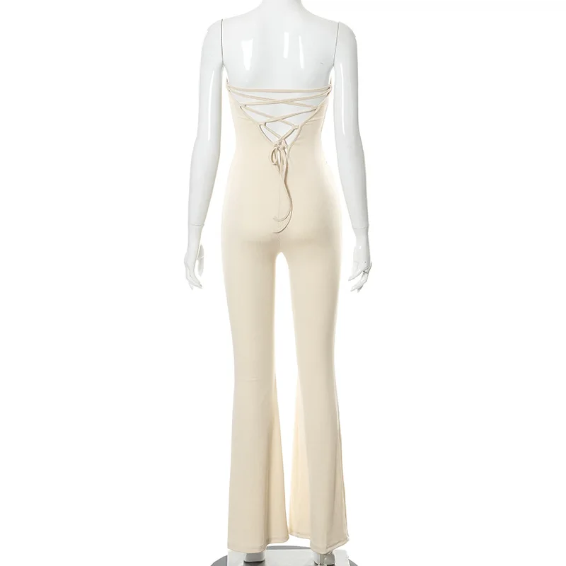 Женский Облегающий комбинезон без бретелек, с открытой спиной