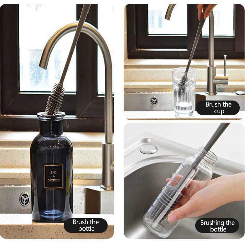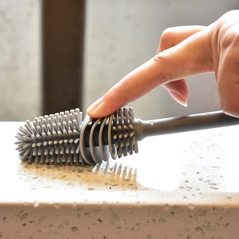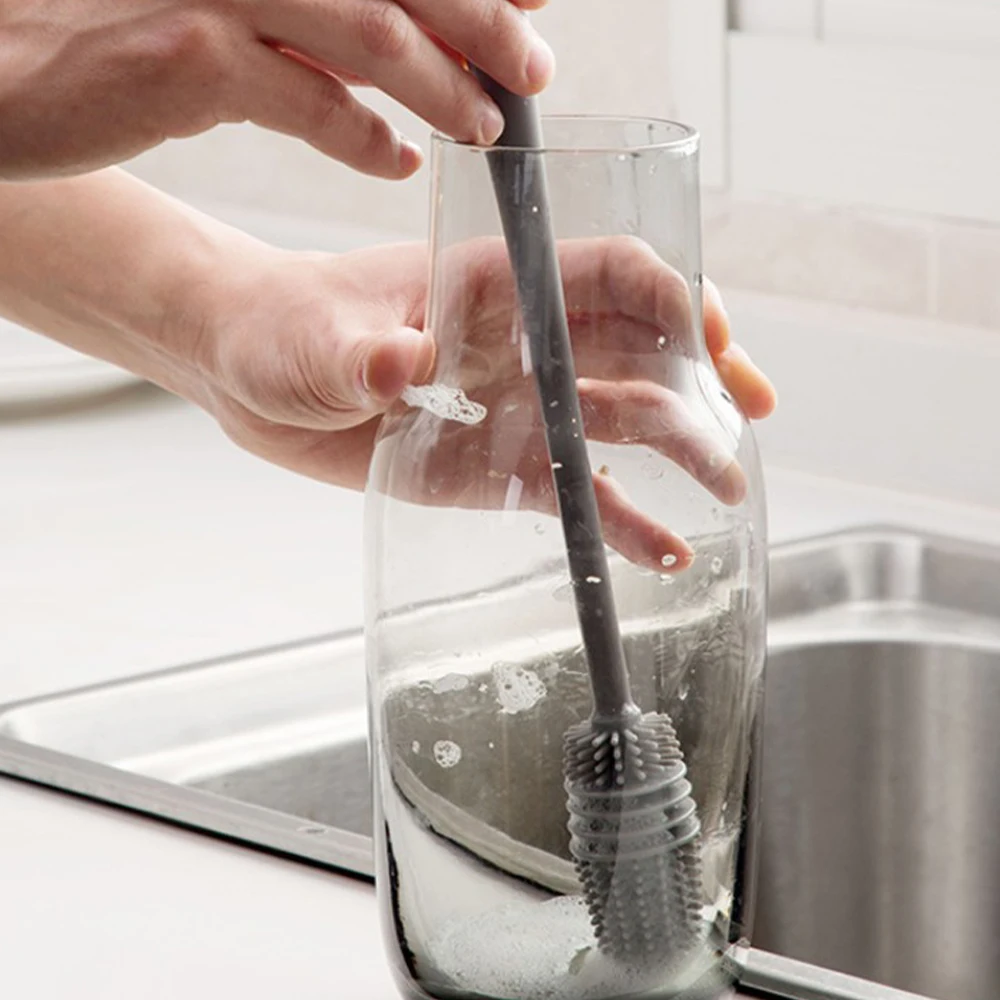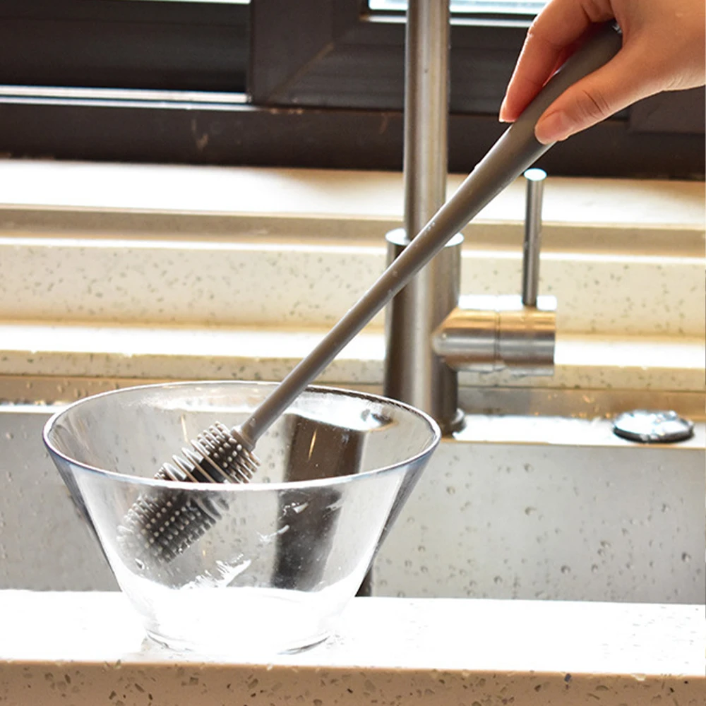 Силиконовая щетка для чашек, приспособление для чистки стекла с длинной ручкой, приспособление для чистки стеклянной бутылки