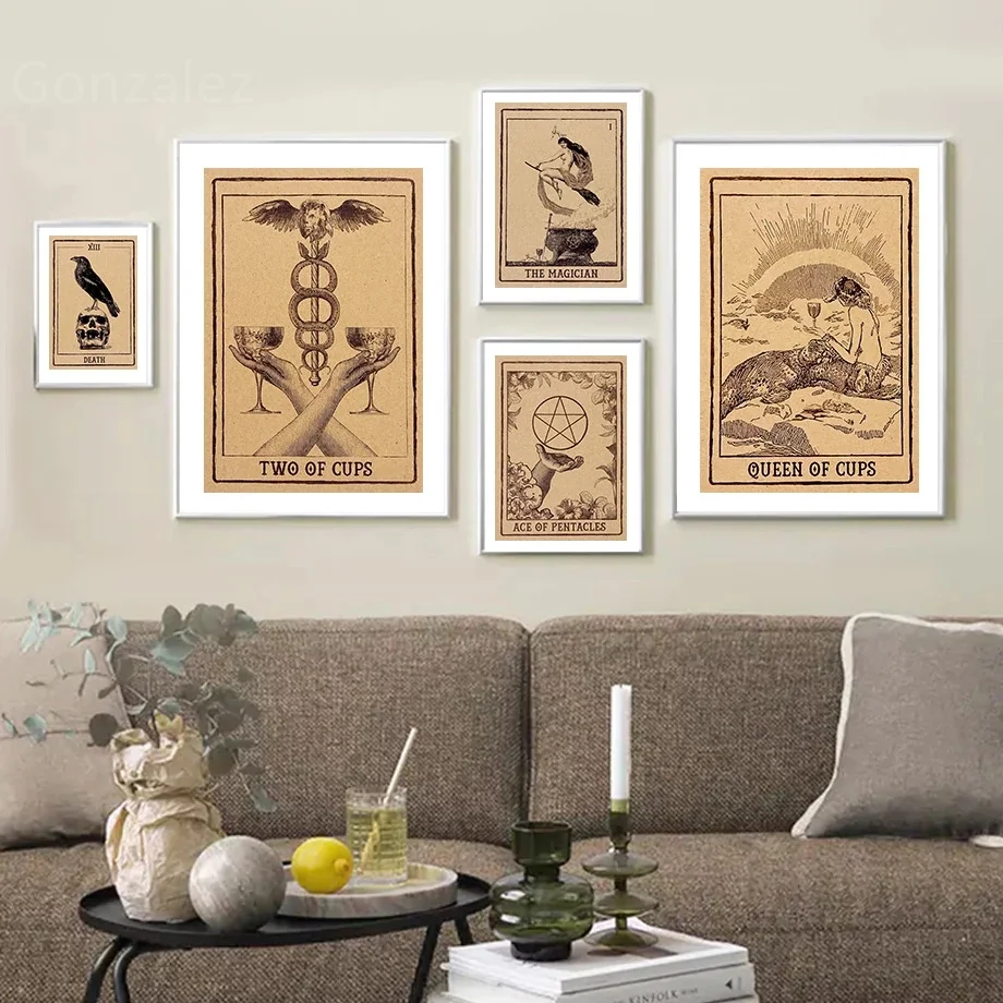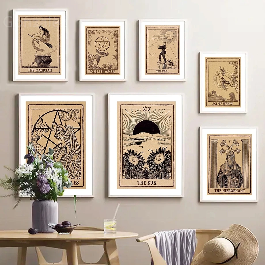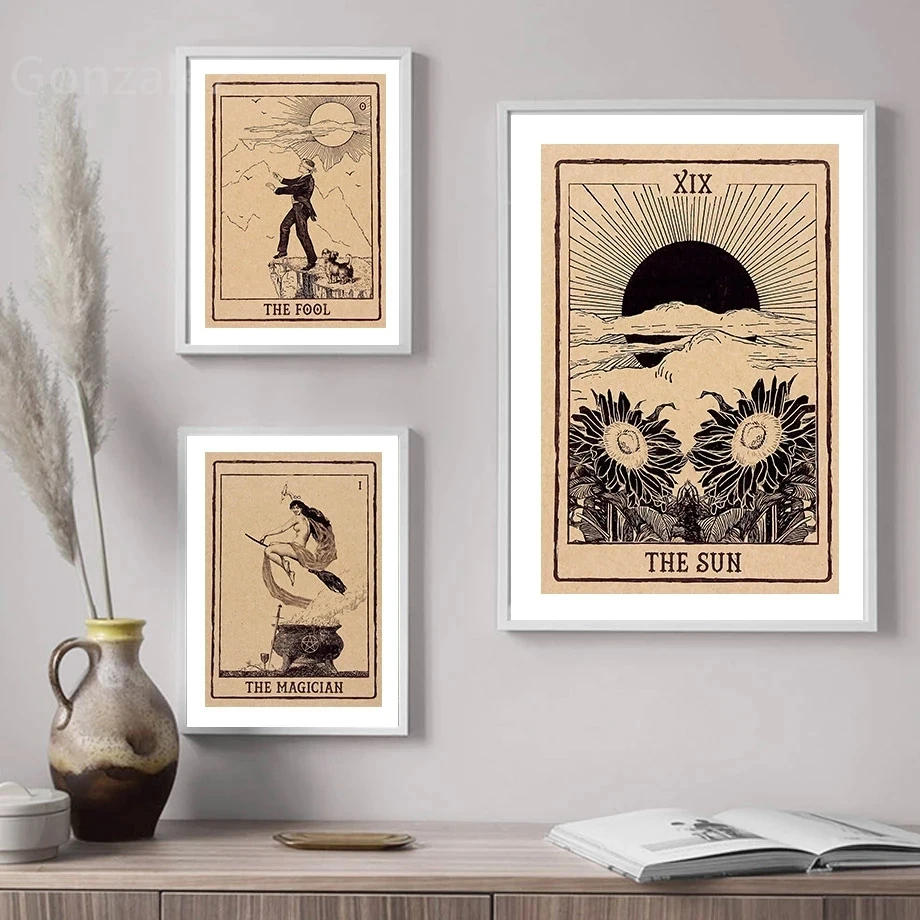 Картина на холсте Таро, волшебник, дурачок, иерофант, солнце, постеры и принты в скандинавском стиле ретро, настенные картины для гостиной, домашний декор