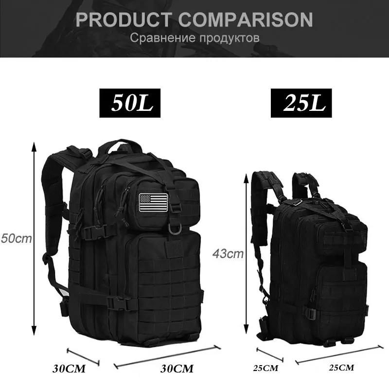 Военная армейская сумка для мужчин, водонепроницаемый нейлоновый рюкзак для кемпинга, охоты, баг, походов, пешего туризма, тактическая спортивная рыбалка, 50 л25 л