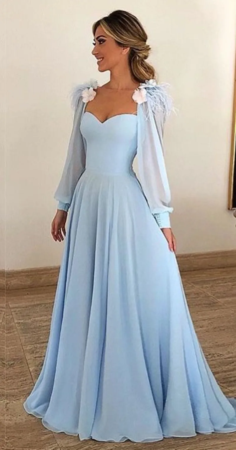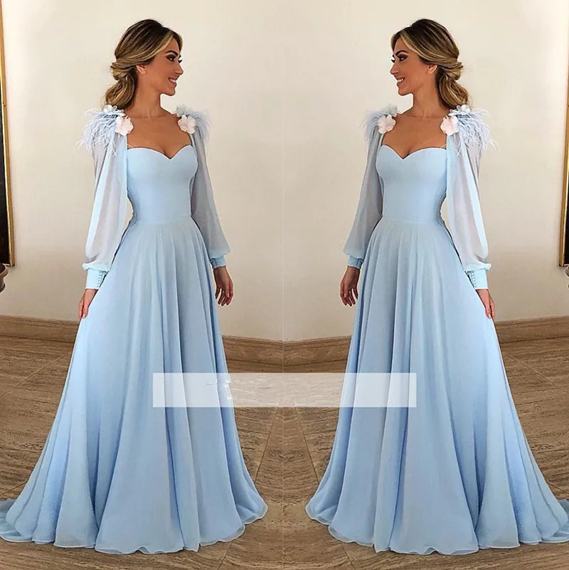 Небесно-голубые мусульманские Вечерние платья 2022 трапециевидные шифоновые платья с длинными рукавами для выпускного вечера в саудовском, арабском, дубайском стиле