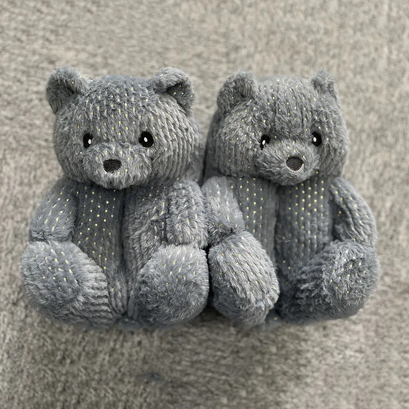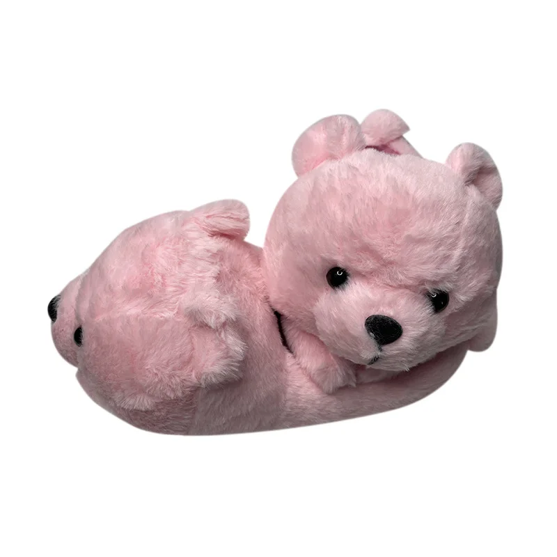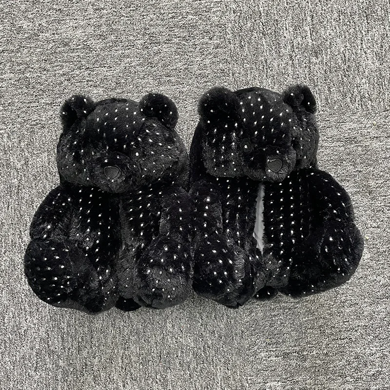 Сланцы для женщин дизайнерские, зимние меховые домашние тапочки с симпатичным животным, дамские плюшевые тапки, мишка тедди