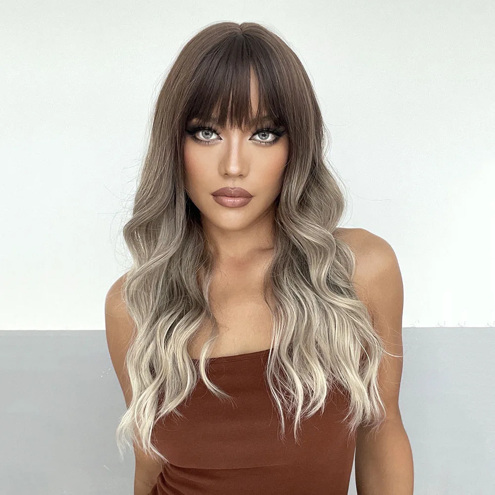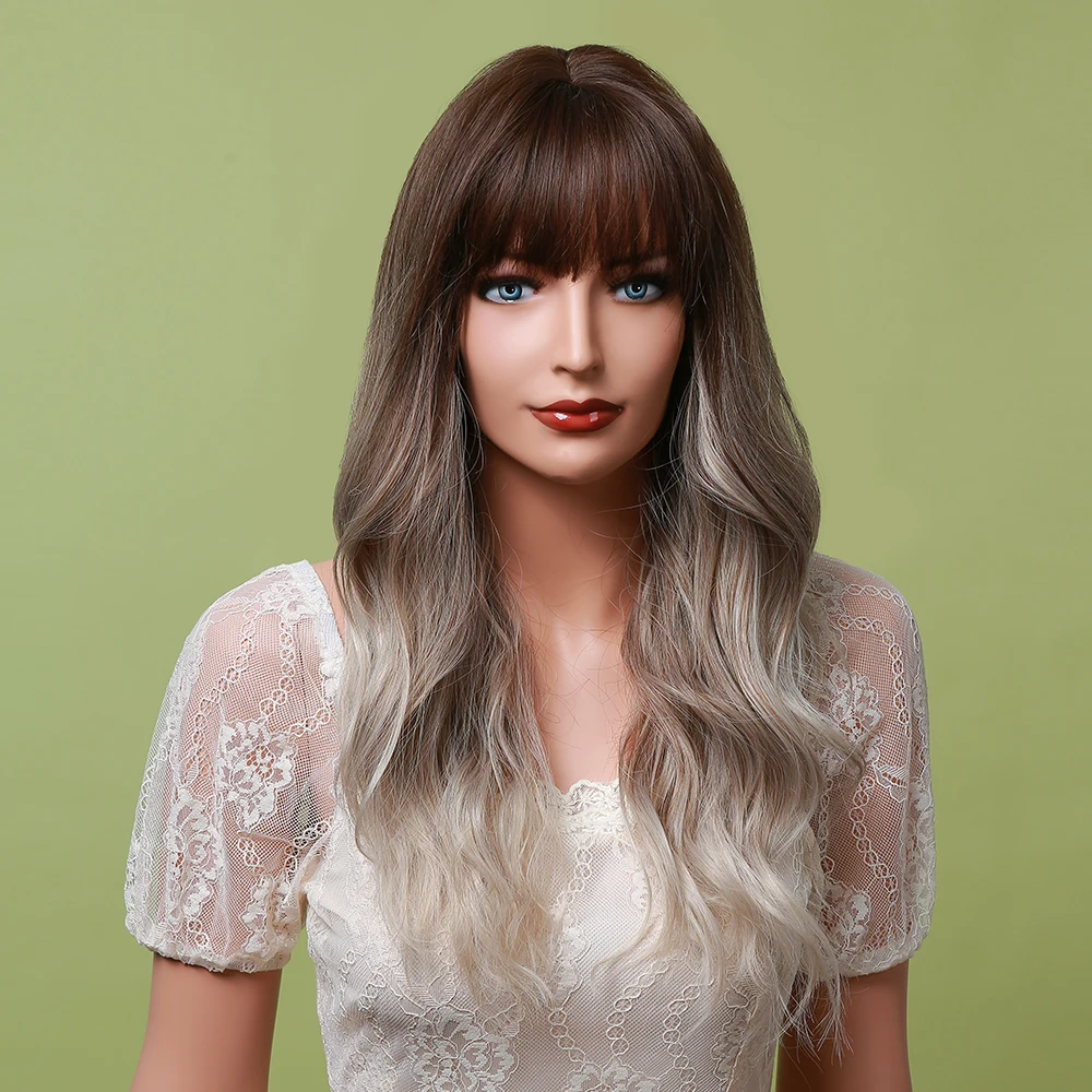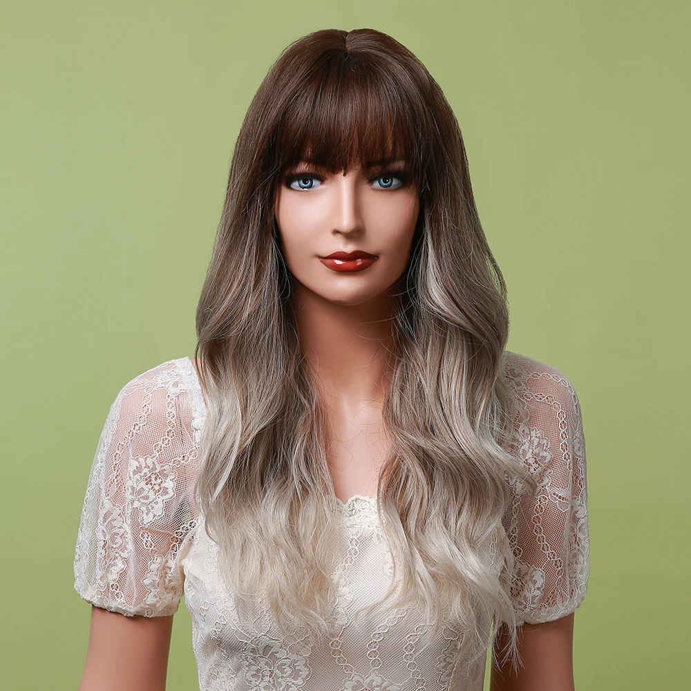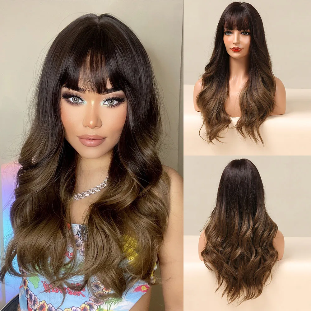 Женский синтетический парик с длинными волнистыми волосами, с челкой